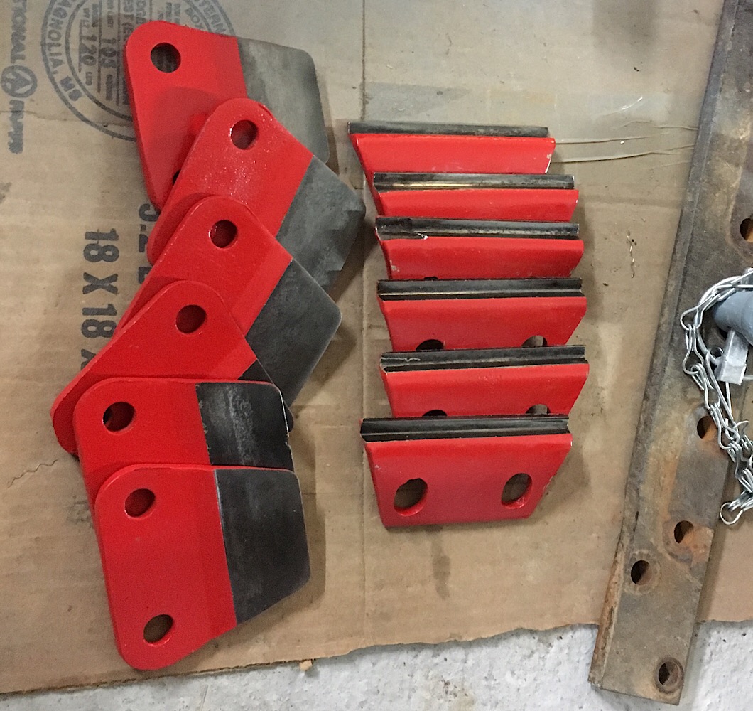 J’avance tranquillement sur le lamier de la faucheuse 832. Je compte le peindre (rouge), à l’exception des zones de contact avec la lame (doigts, pinces lame, etc.) Je me contenterai de les huiler légèrement (WD40).