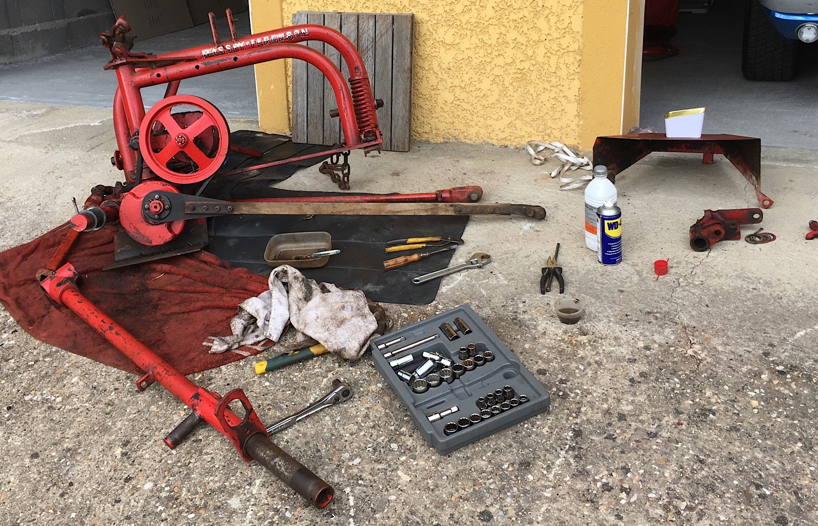 Et j’avance sur ma faucheuse MF832 en parallèle. Sous la crasse et la peinture, des pièces magnifiques. La biellette est comme neuve, je suis vraiment étonné!