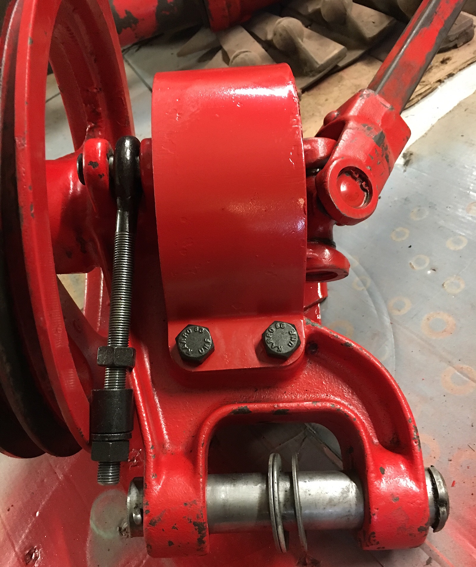 Peinte, avec ses boulons décapés et traités.