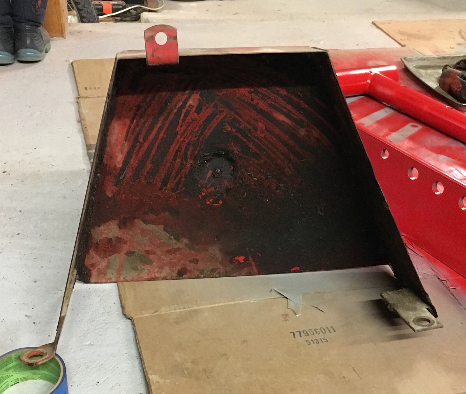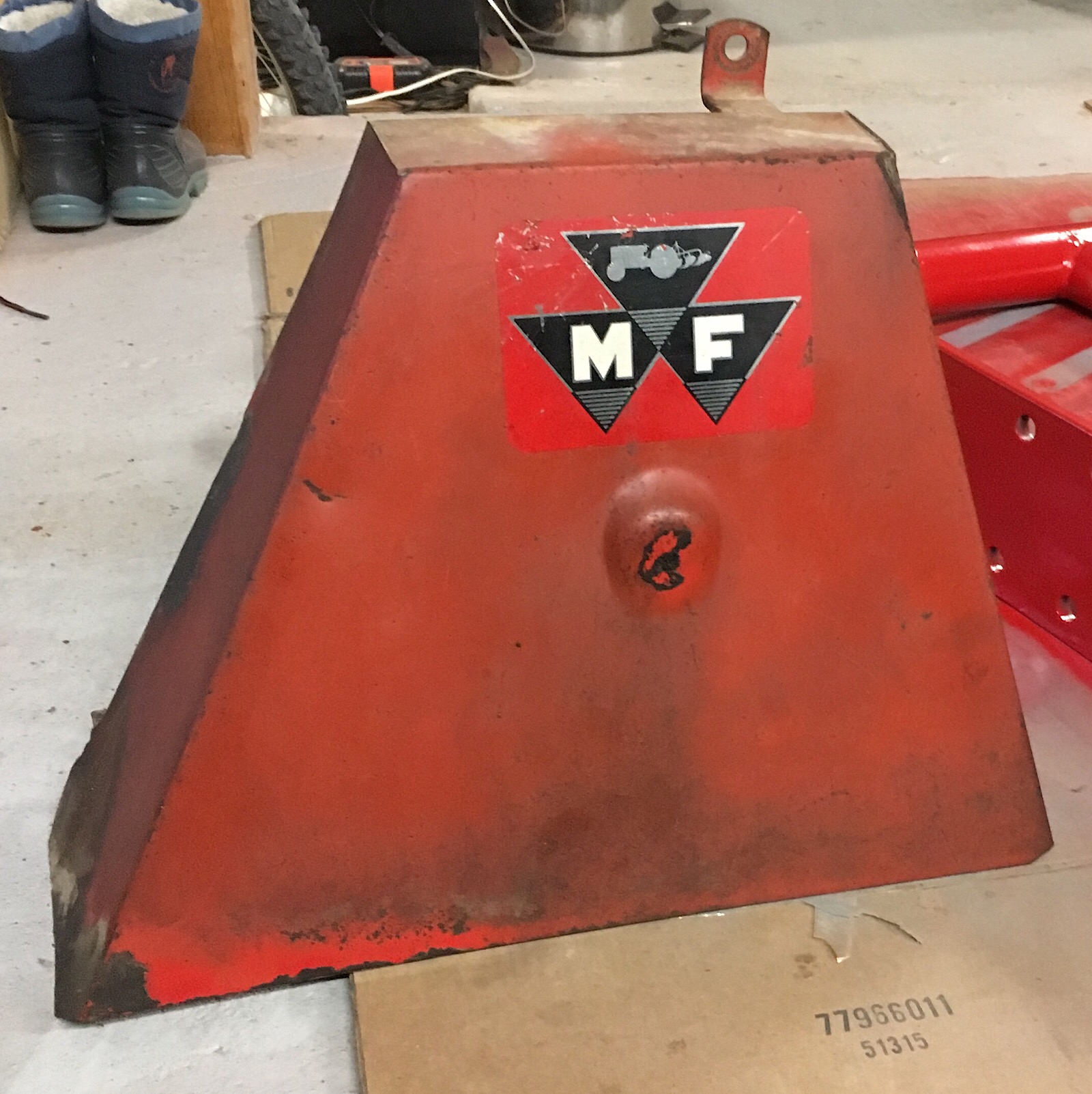 Et je viens de terminer le carter de protection des courroies. Plus simple car relativement bien conservé. J’ai même pu garder l’autocollant.