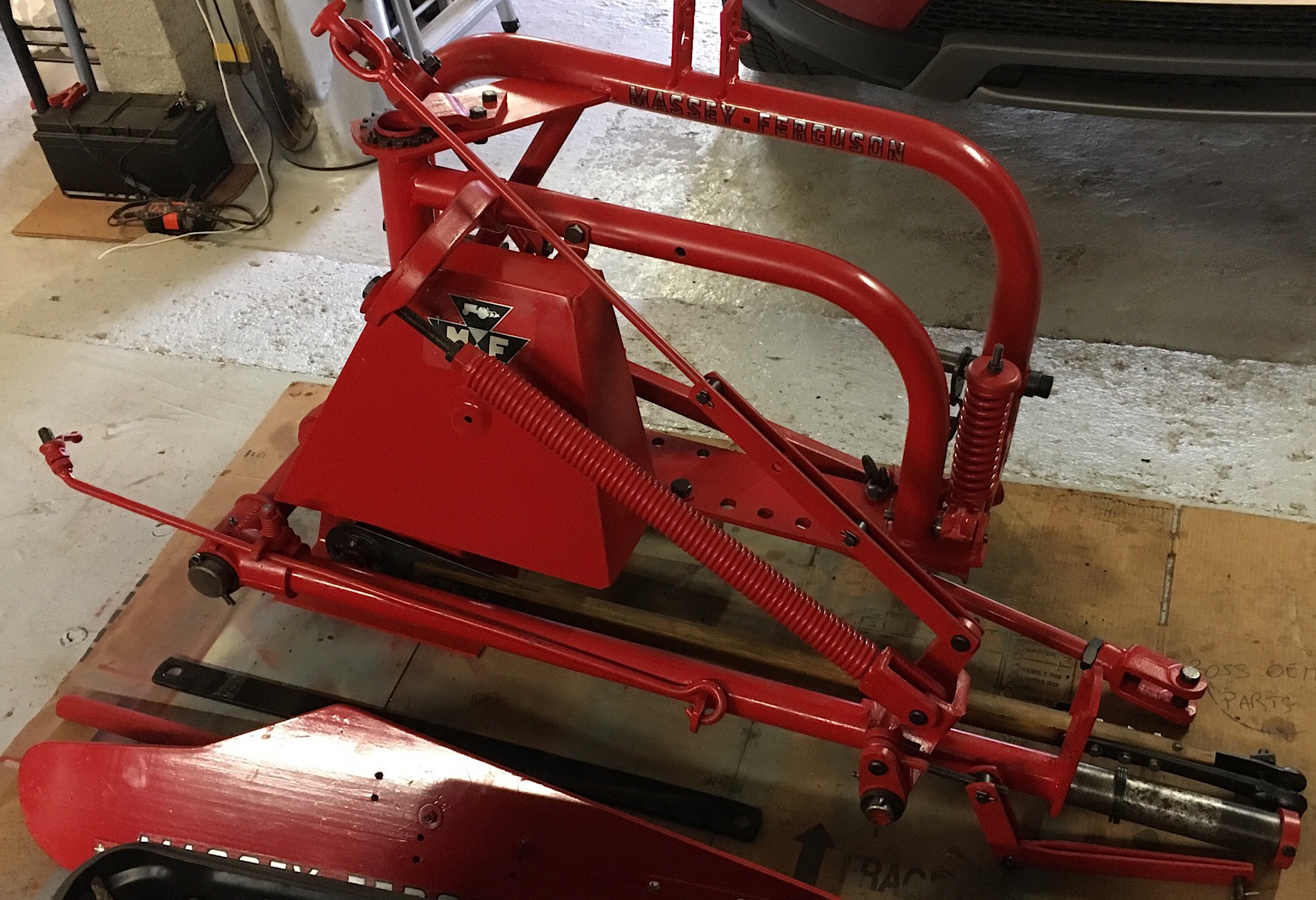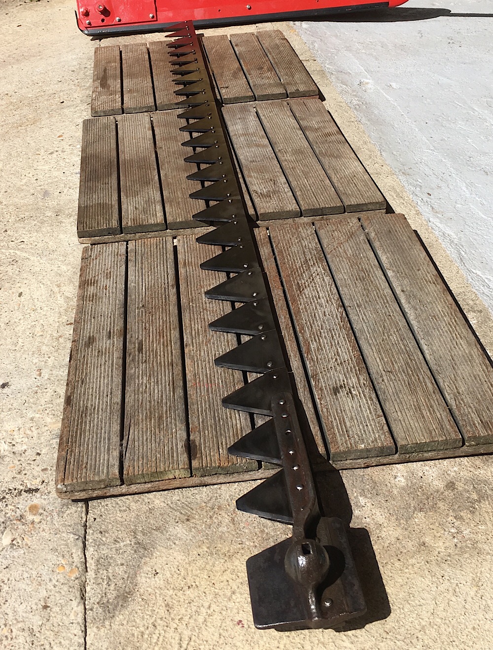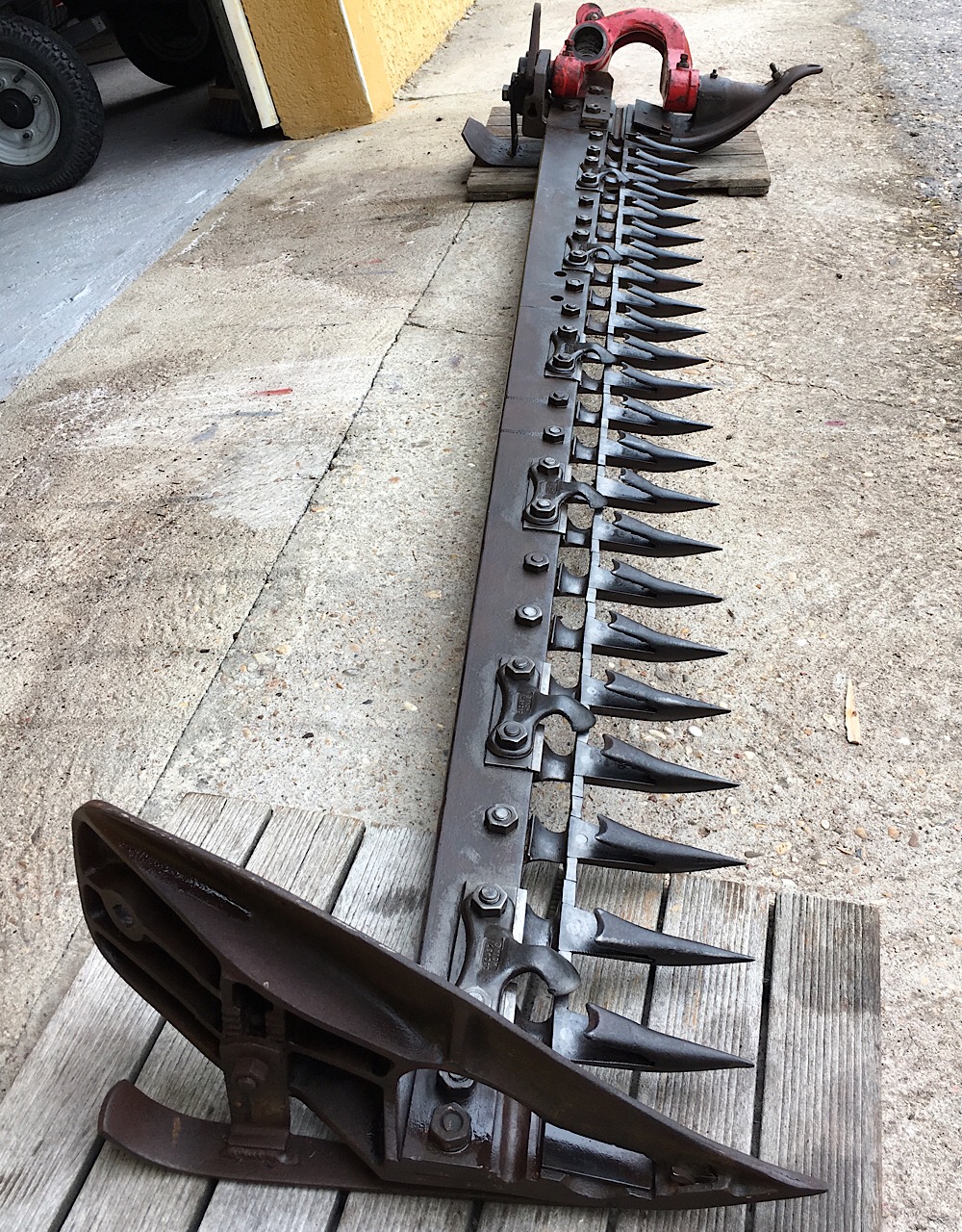 Ah oui, même sans la barre de coupe, elle est vraiment hyper lourde... L’ensemble fait 225 kg d'après le manuel. Faut vraiment faire gaffe de pas se la prendre sur le pied ou la main. Et de ne pas s’esquinter le dos en essayant de la remuer seul.