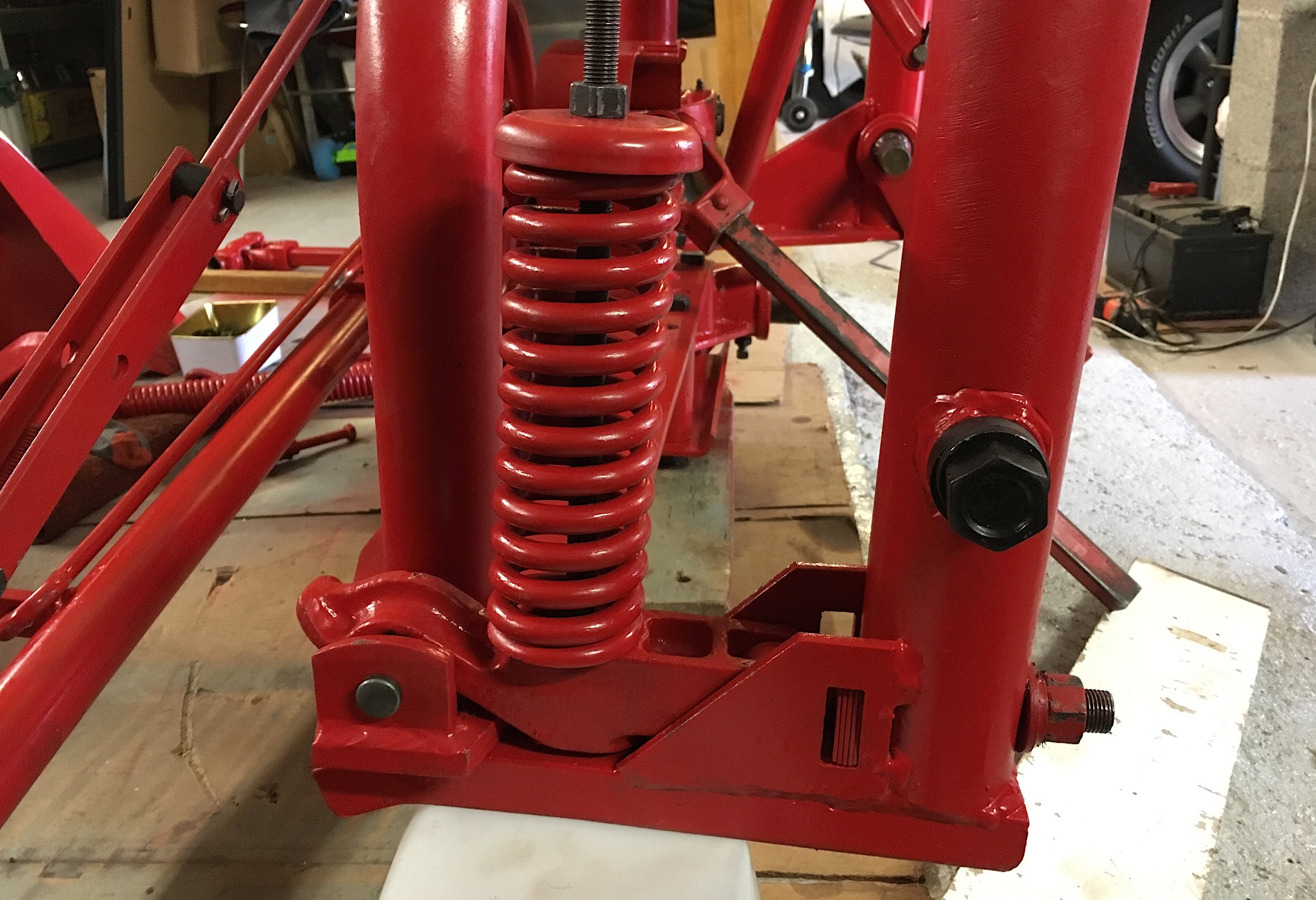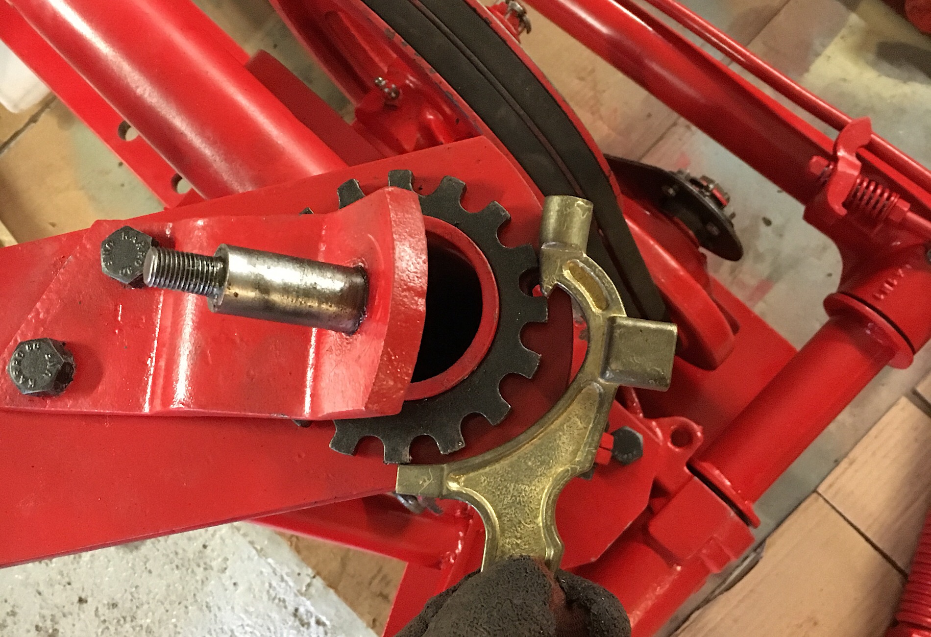 J’ai pu effectuer tous les réglages prescrits dans le manuel: ressort compensateur, système de sécurité (ressort, hauteur charnière, etc.) Et j’ai tout graissé (il y doit y avoir une douzaine de graisseurs sur cette machine). Comme tout est propre, c’est vraiment simple à faire. Encore une fois, seul le poids reste un peu pénible à gérer.