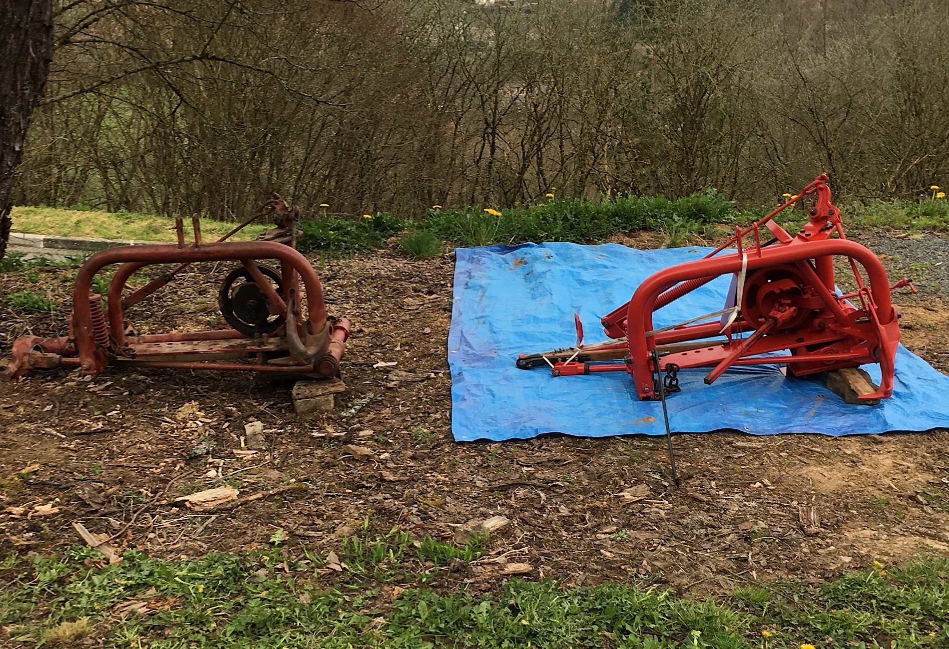 Se pose désormais la question de la barre de coupe. J’avais commencé à en restaurer une, celle de la première 832 que j’ai récupérée. Je la finirai et la remonterai tranquillement cet hiver. Pour l’instant, je vais juste nettoyer rapidement celle qui était avec cette seconde 832 que je viens de terminer et remonter l’ensemble pour être prêt à faucher. Donc ça devrait bientôt le faire en effet!