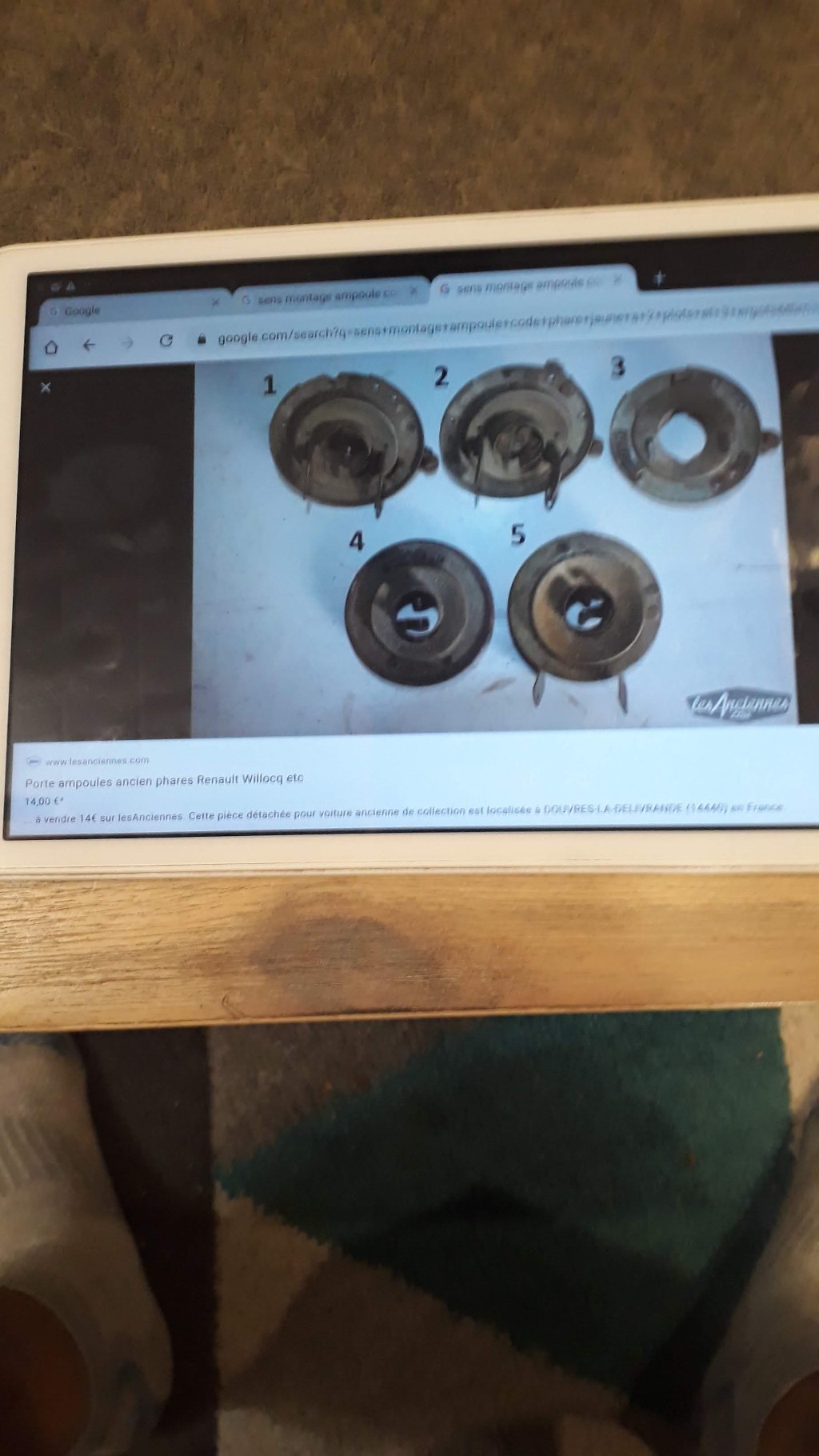 J'ai la photo avec l'adresse du site, tout est dessus. Si tu peux retrouver cette adresse, il y a des portes lampes à vendre identiques à ceux de nos Ferguson., apparemment serait standard pour ce genre de lampes jaune anciennes les BA21D Il y a un porte lampe Auteroche le 5 je crois. Désolé de ne pas pouvoir te mettre le site avec la page correspondante, mais moi et le net, c'est pas tou'ours ça lol Si tu peux retrouvé sur ton ordi ? Te laisses faire la recherche et j'espère que tu trouveras.