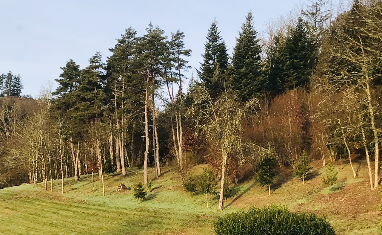 Non, je n’ai rien semé. J’ai planté quelques épicéas (nos sapins de Noël ces 4 dernières années), mais c’est tout. C’est avec le retour de la lumière que l’herbe a refait son apparition naturellement dans le sous-bois.