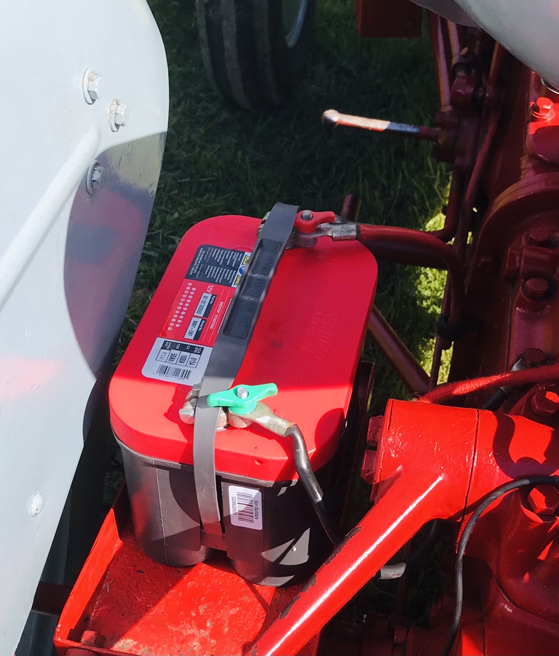 Petite surprise : la batterie est en train de lâcher. Après plus de 7 ans de bons et loyaux services (elle était déjà sur le tracteur, usagée, lorsque je l’ai acheté en 2017) je ne me plains pas. Toujours rangée au chaud au garage sur un mainteneur de charge, ce matin, elle a franchement peiné à lancer le 4 cylindres diesel. Et plus tard, à la station essence, morte. Impossible de démarrer sans câbles + batterie de secours. Moteur en route, tension de charge de 12,4v aux bornes de la batterie, donc bonne charge. Pour la remplacer, je me suis fait franchement plaisir avec une Optima Red Top RTC 4.2. Avec 815 CCA (ampérage de démarrage à froid), ça devrait dépoter à la mise en route!
