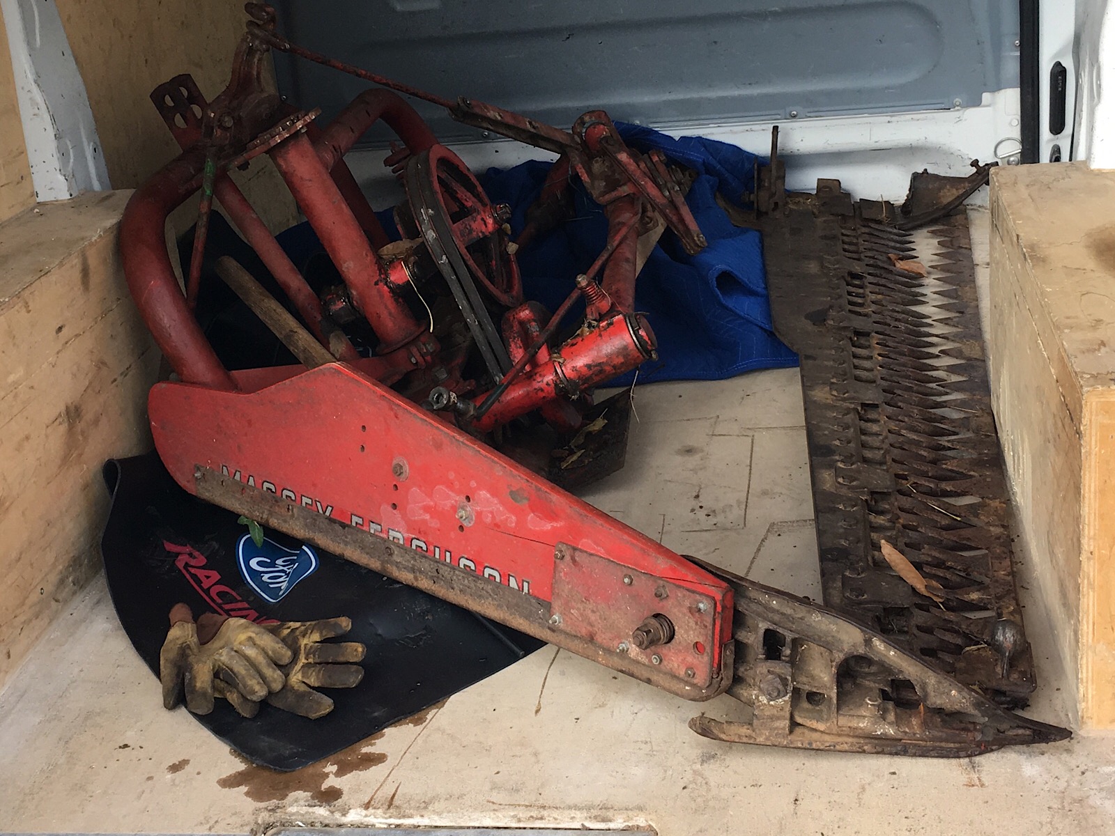 Sinon, au passage, je l’ai trouvée attelée à un joli Ford Super Dexta 3000, qui nous a fait le plaisir de demarrer sans problème pour lever la faucheuse et l’amener au cul du fourgon. C’est sacrément lourd, ce bazard, même à deux!