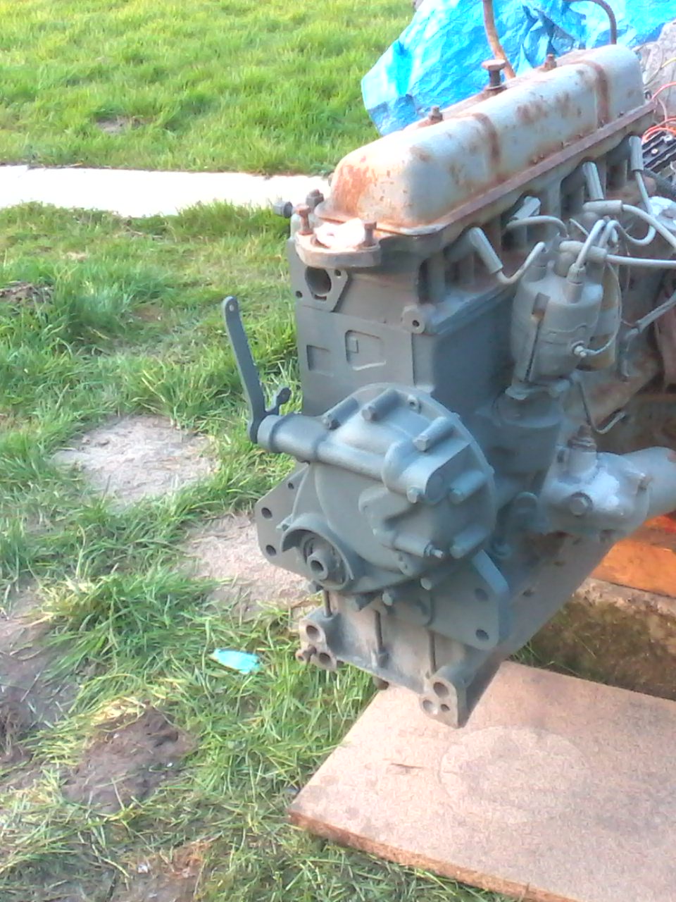 Le bloc moteur fendu ,manque tout les instrument du tableau de bord,ainsi que la vis du bloc moteur recevant le tuyau de pression d'huile mais pneus avant neuf,phare en pas trop mauvaise état.J'ai trouvé qu'une plaque à droite noté assemblé en France par la Sté Standard Hotchkiss ST Denis (seine) numéro 5312
