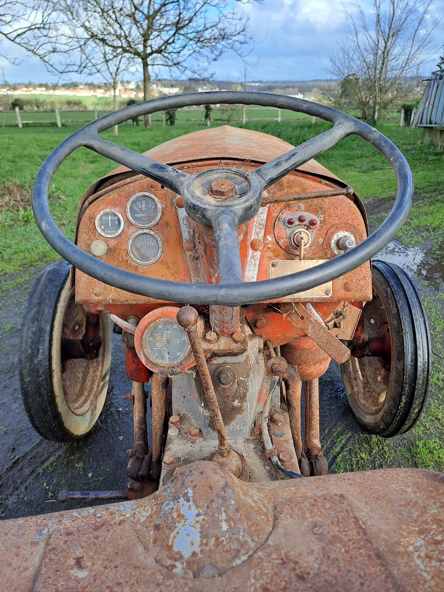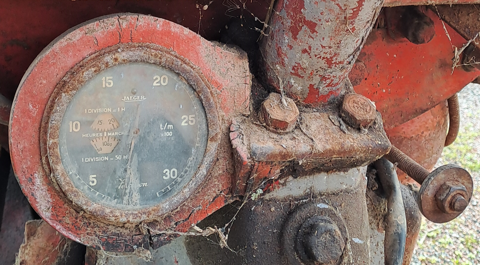 Bienvenue ici Pierre. La mécanique du Ferguson est plus « simple » que celle d’une Ducati, mais c’est plus fatigant, plus physique et surtout beaucoup plus salissant. Mef à la vidange boîte/pont/hydraulique : il y a 23 litres d’huile dans le bouzin... tout de même. Faut prévoir large niveau récipients. Sinon, je suis d’accord avec les autres, une bien belle option, ce compteur. Magnifique! À remettre tranquillement en état, le moment venu. Ça et le démarrage au levier (une simple tringlerie avec un bouton poussoir à l’extrémité). Démarrer au levier, c’est magique. Au préalable, remettre le faisceau électrique au propre évitera bien des petits ennuis. Enfin, pour la tonte, prévoir également une roue libre entre l’outil et la prise de force. Cela évitera de faire un tout droit au premier demi-tour.