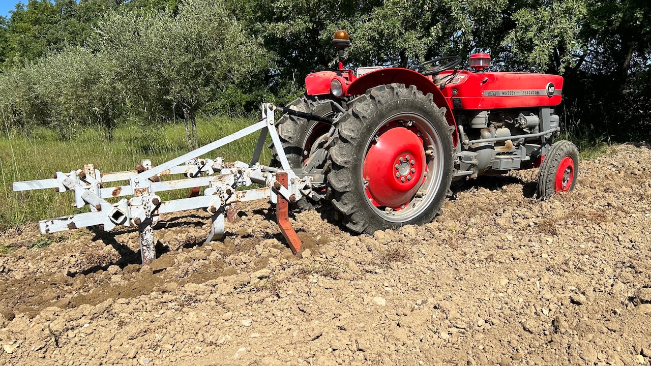 Au début l'outil peine a rentrer dans le sol, l'outil se coince dans les obstacles et le Ferguson patine.