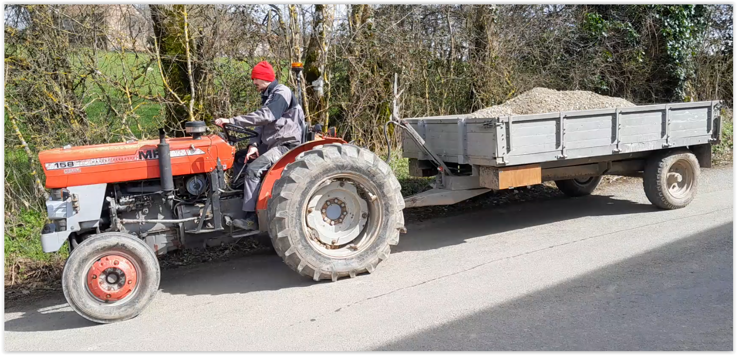 Toujours impressionnant de voir le petit gris avec sa remorque chargée. bravo