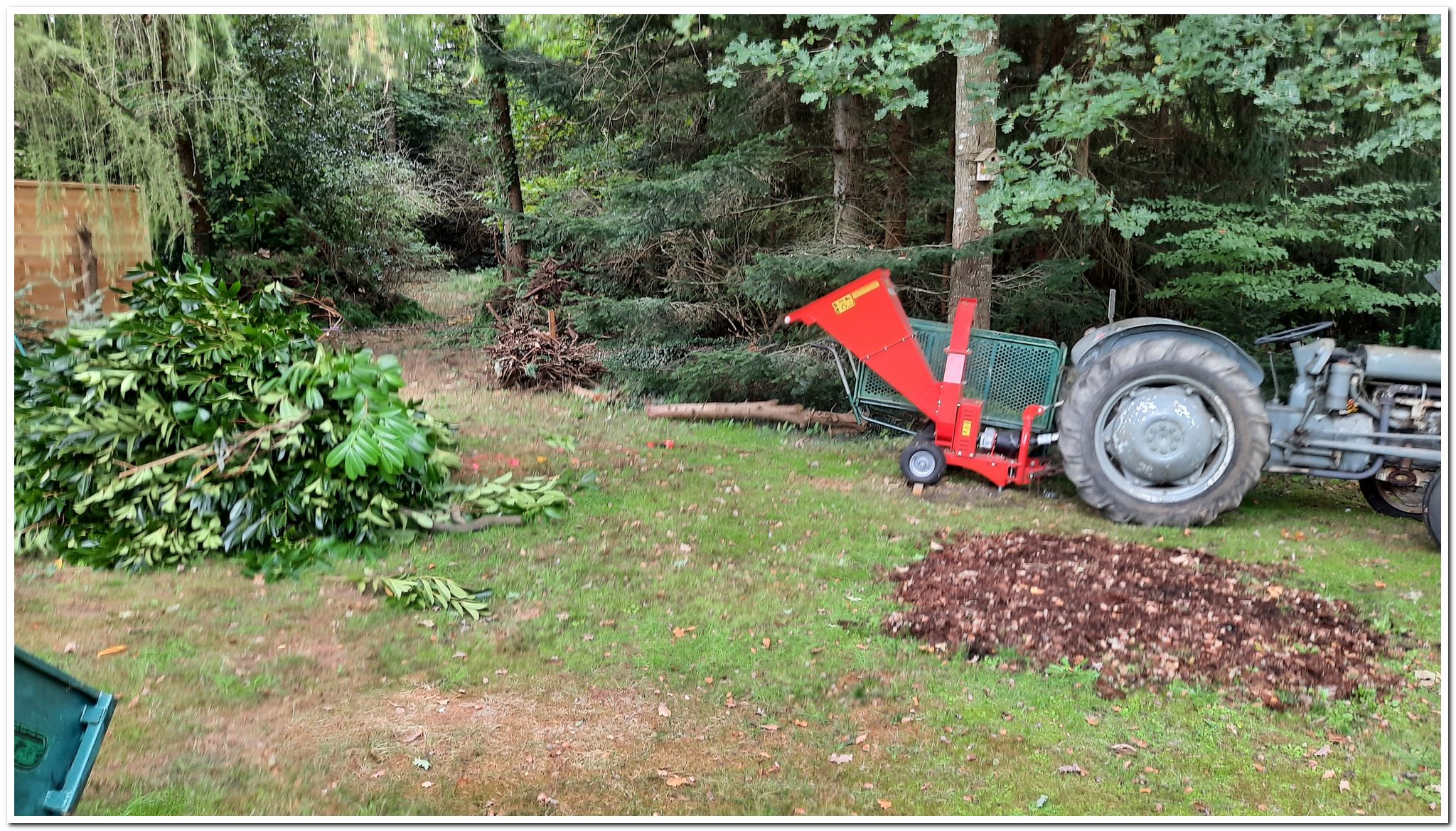 Une 1h 45 mn plus tard, le tas a bien diminué et j'ai arrêté car mon chariot pour les broyats était plein.