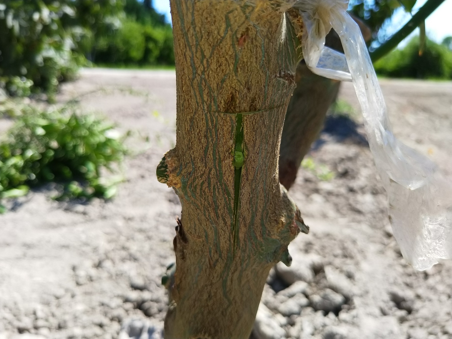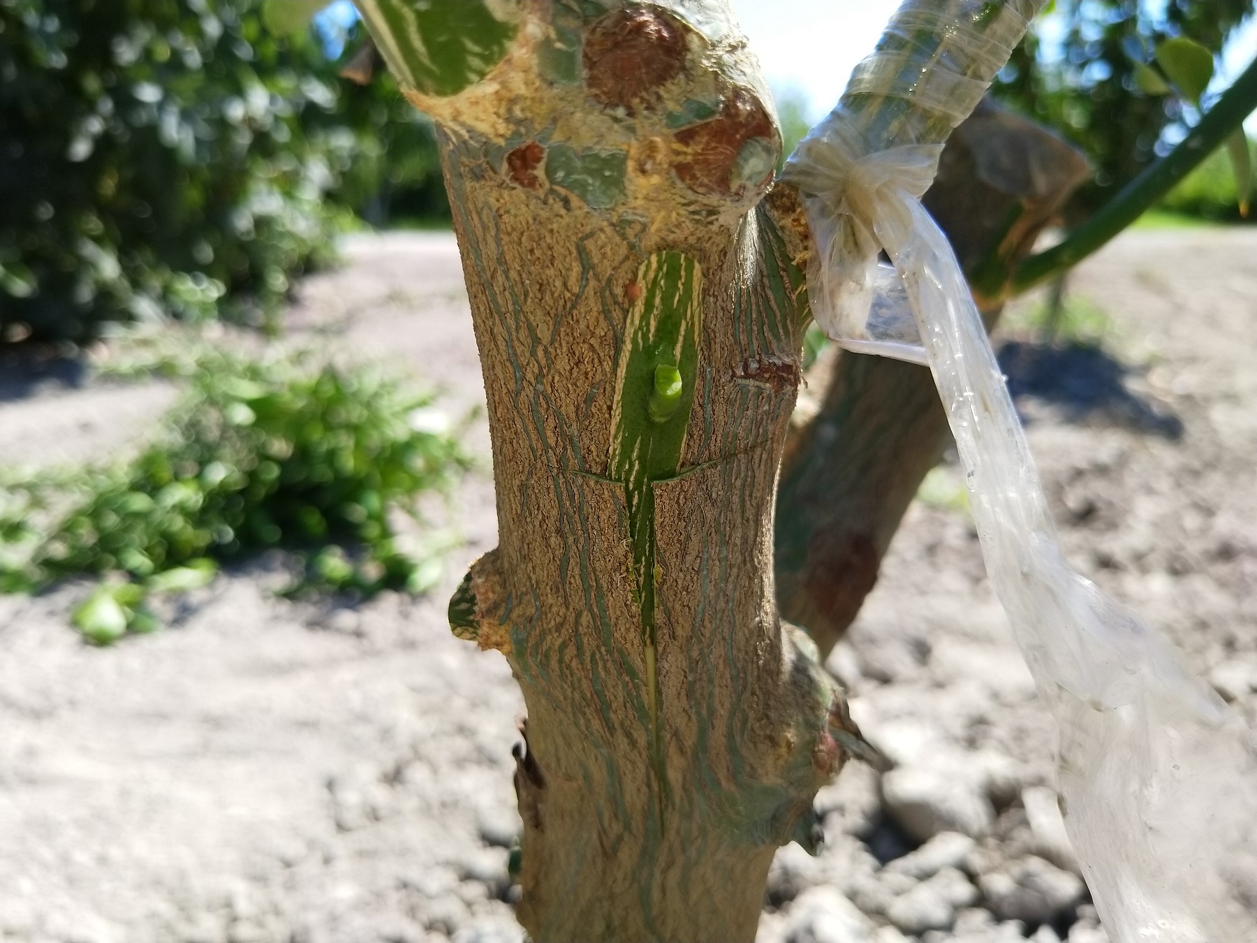 Et voici pour finir un oeil d'un clémentinier variété Corse gréffé au printemps et qui aurait du démarré a la suite , mais hélas non , j'ai donc rabattu sévèrement l'arbre pour l'obliger a démarré dans les jours qui vienne j'espère jusqu'à l'automne ou hiver