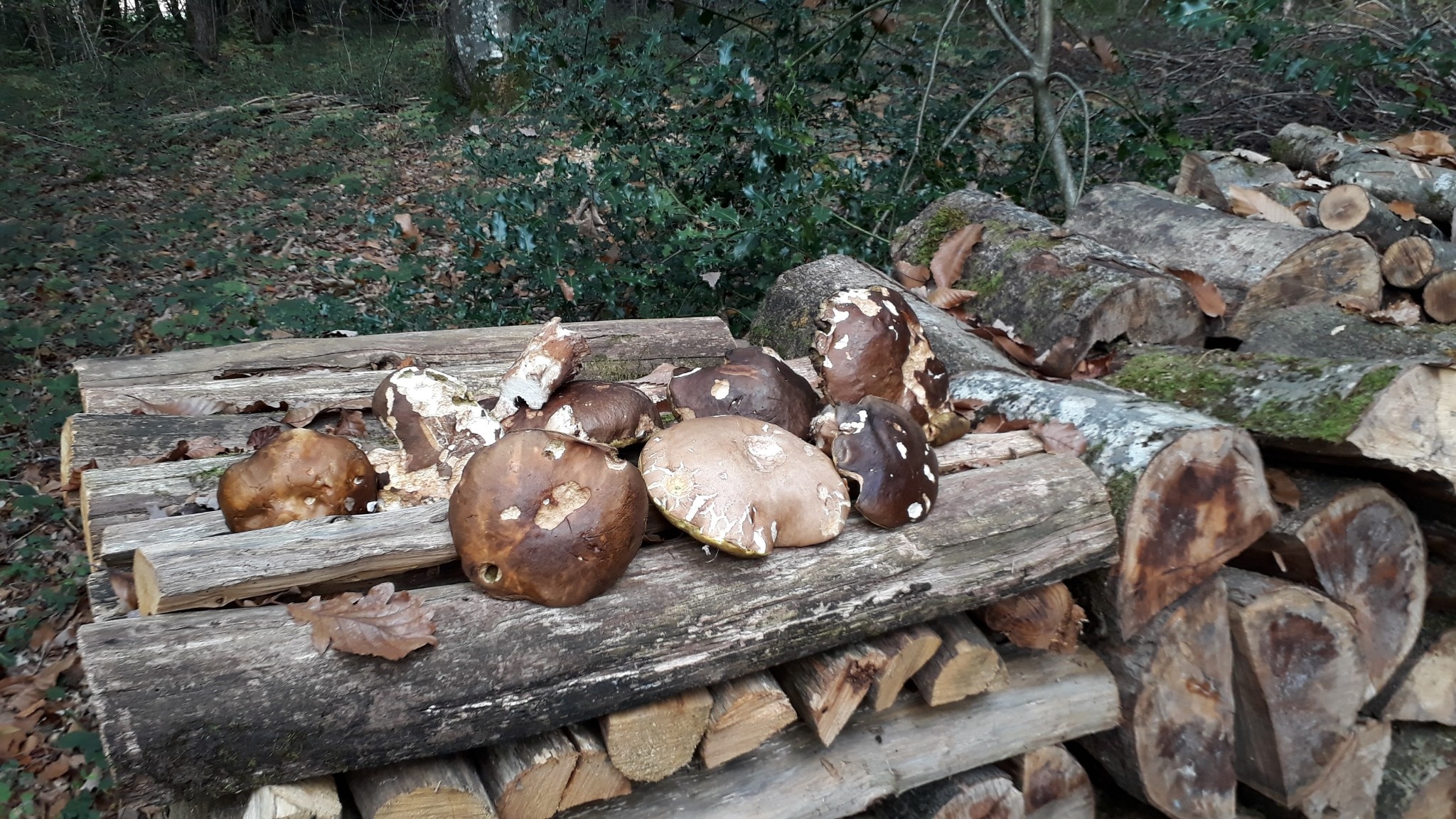 Voilà, petit tour au bois pour empiler en stères pour le comptage. En même temps, petite cueillette de quelques cèpes.