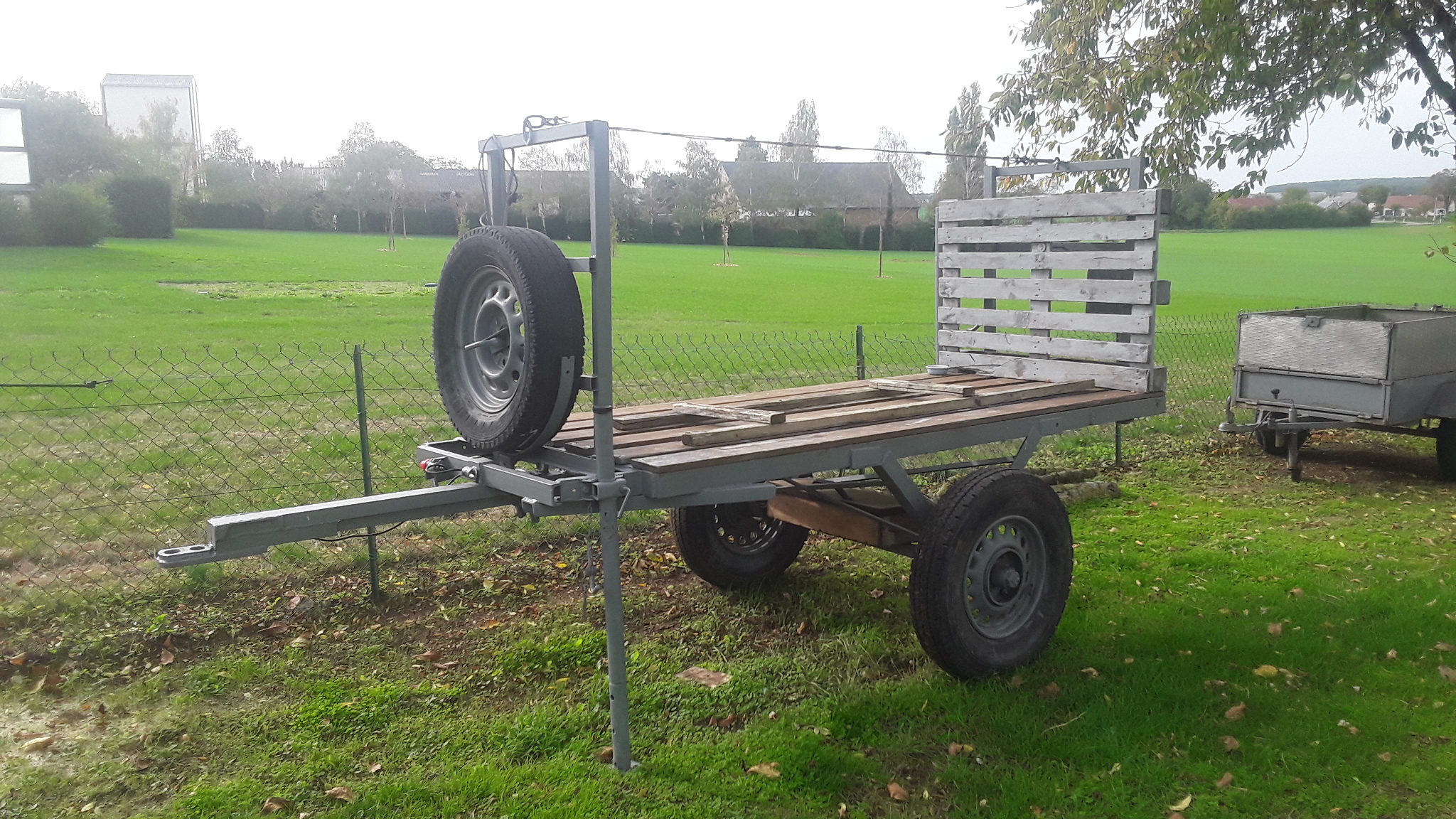 Remorque transformée pour le bois, à la base servait pour les ballots de paille
