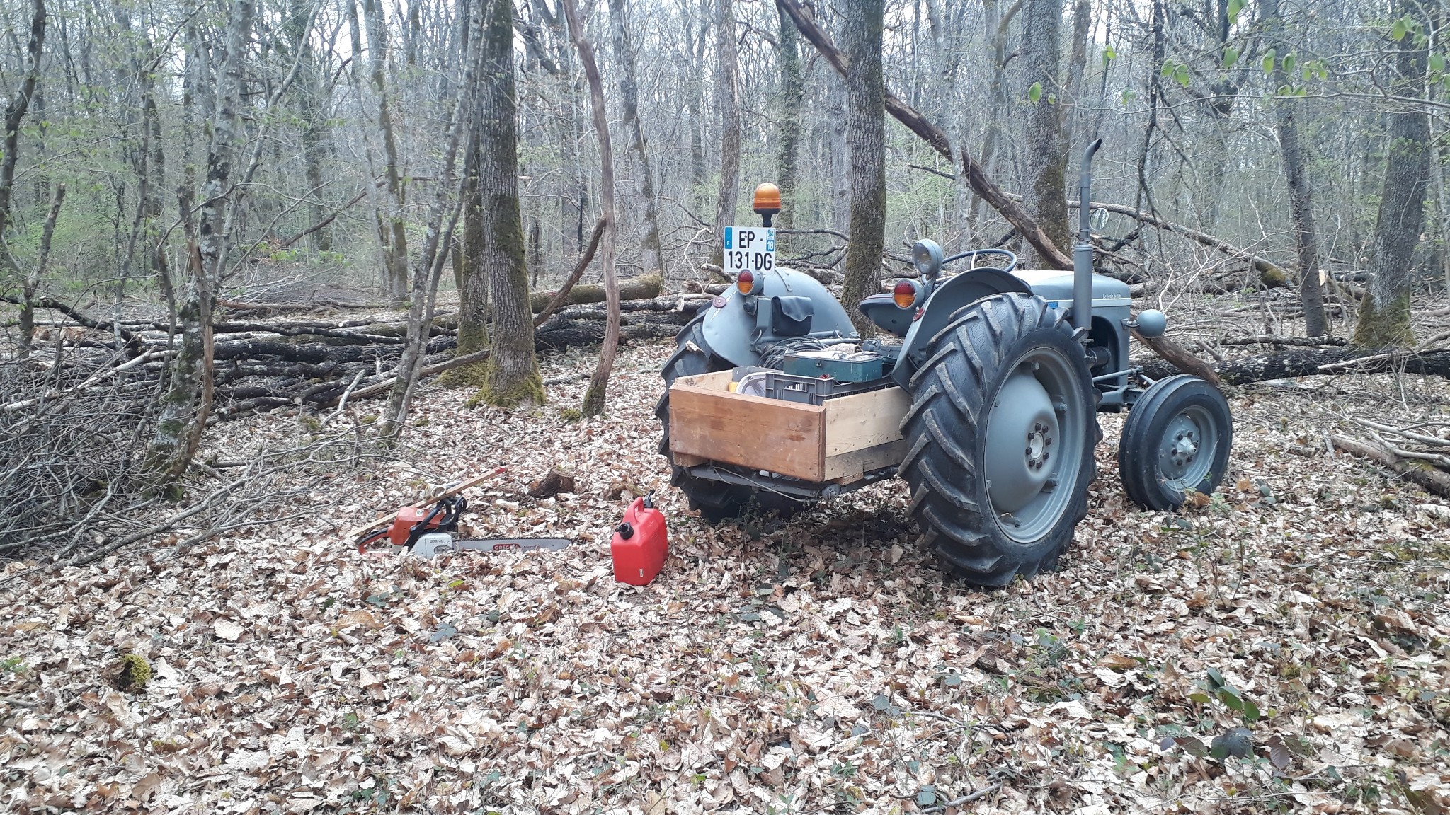 Fabriqué une petite caisse bois pour le matos de coupe, la bennette n'est pas pratique dans la forêt pour les manœuvres entre les arbres.