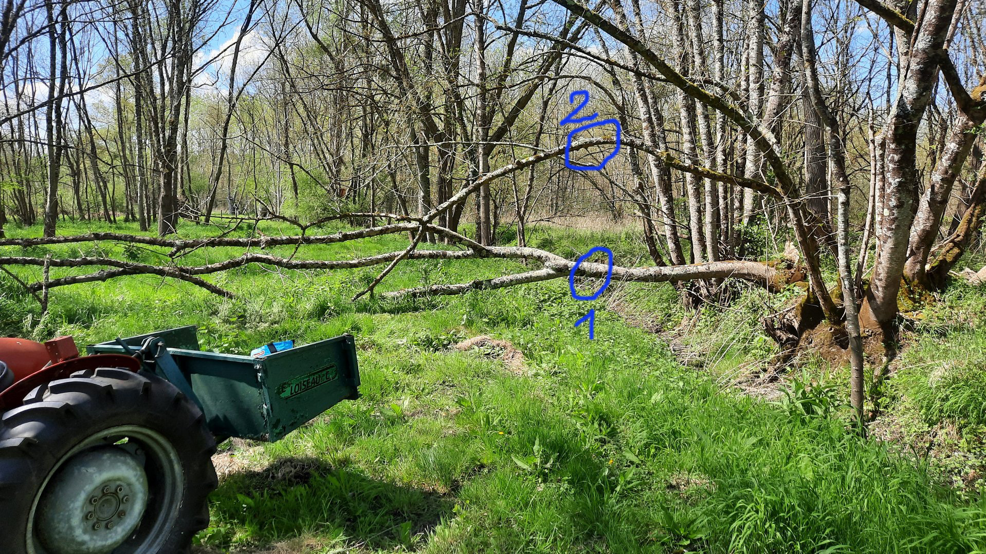 J'ai un petit problème dans mon pré. Il faut que je débarrasse. Un frêne tombé il y a 6 mois environ...