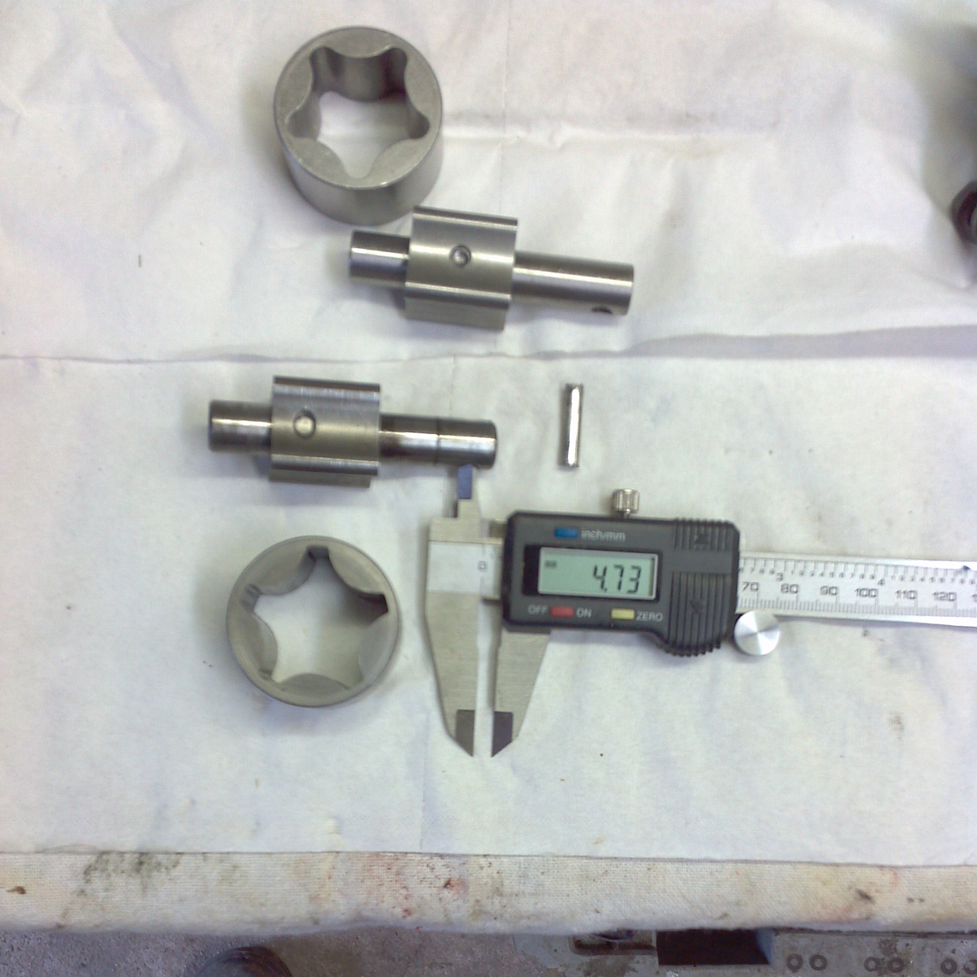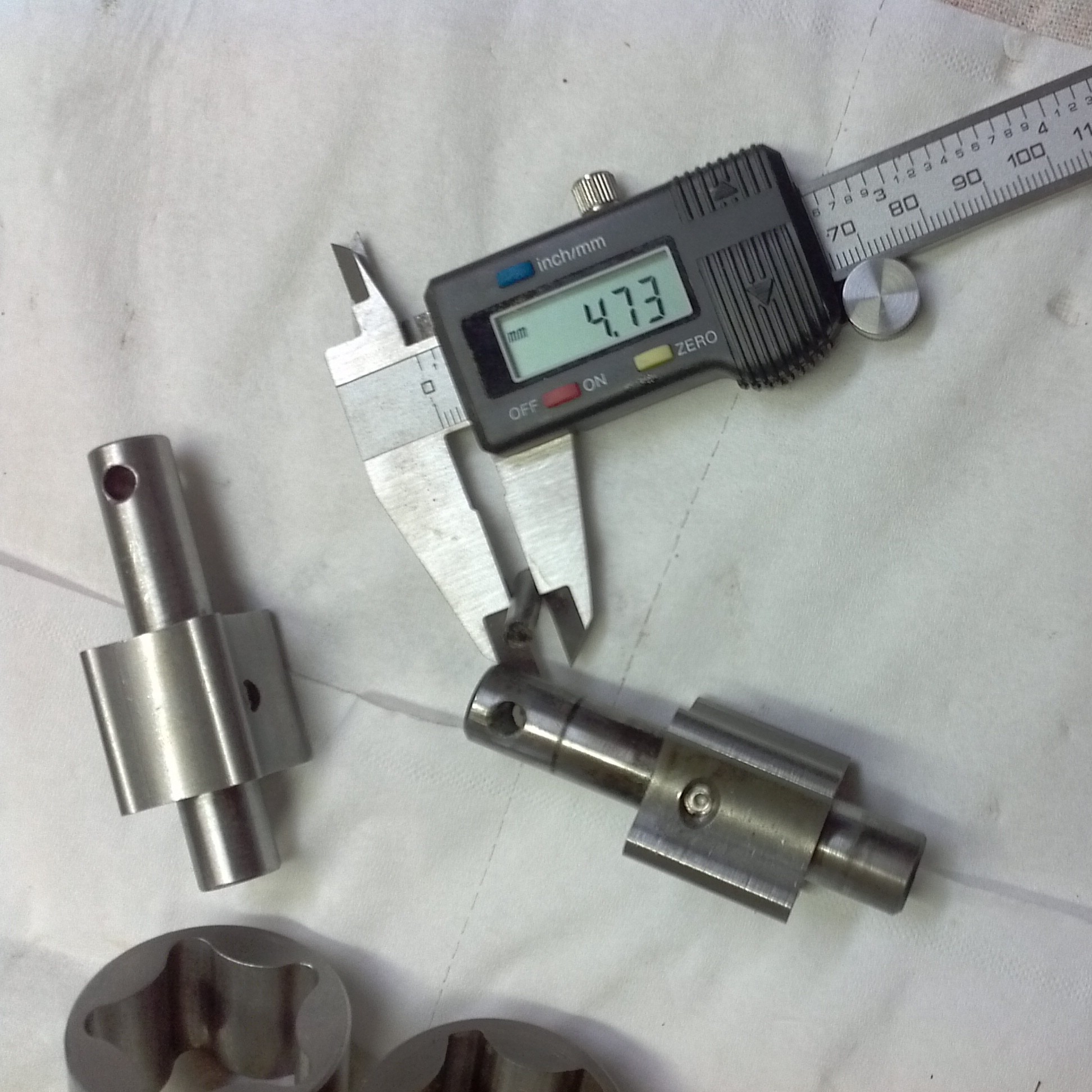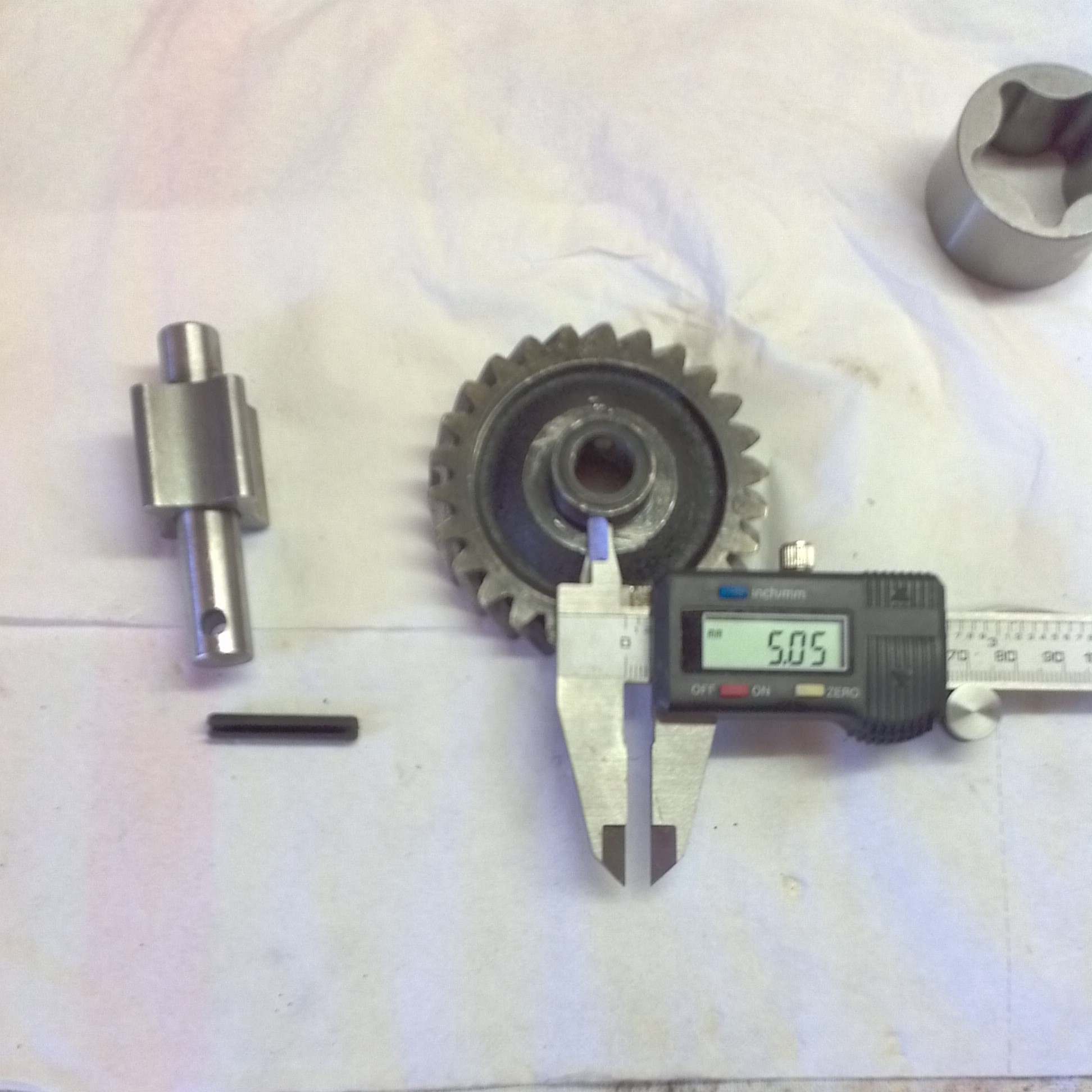 Suite a mon petit souci de clavette je suis allé chez mon rèctifieur qui ma donné un axe creux et fendus don je ne me souvient plus le nom il mesure 5,40 mm de diamètre et peux ce rétracter jusqu'à 5 mm .