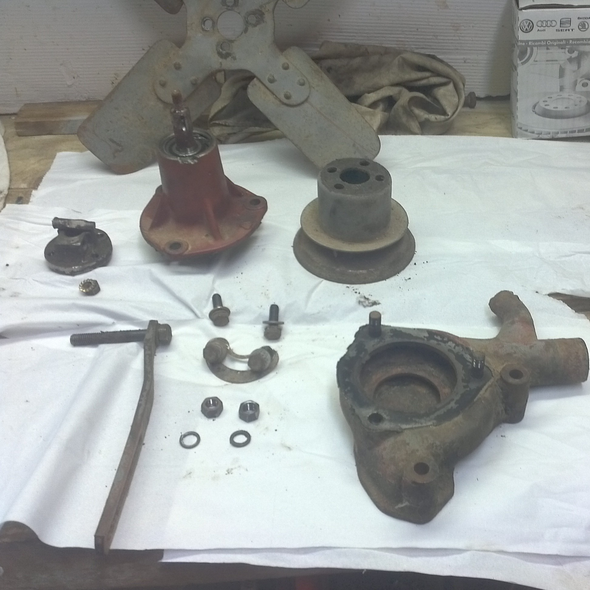 Je passe a la pompe a eau et que de surprise ! Je m'explique cette pompe n'était pas celle d'origine elle provient d'un donneur d'organe celle d'origine été munis d'un graisseur et fuyait mais il y a quelques années j'ai fais du tris et je les jeté pfff