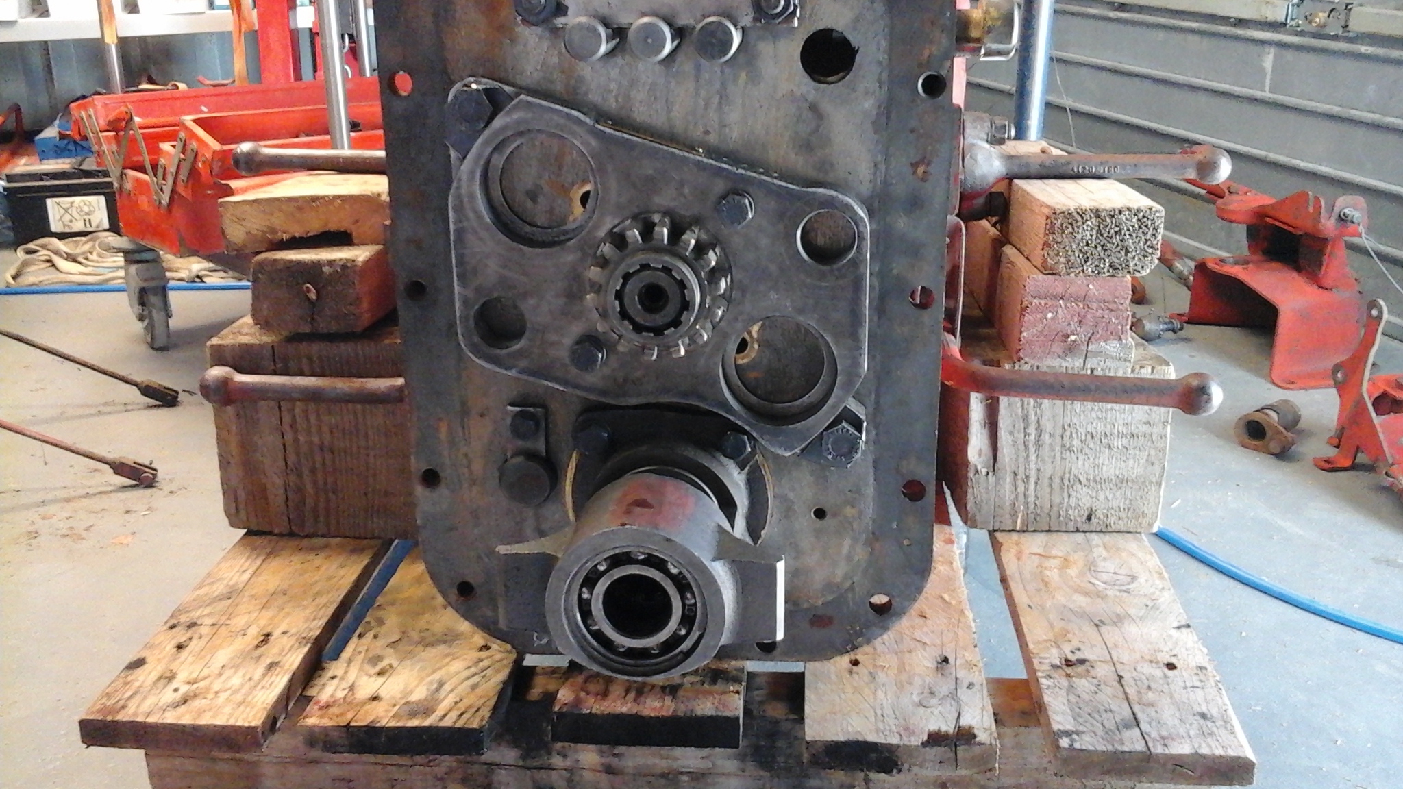 Pour comparaison le crabot d’origine de la pdf et la cage du roulement de sortie de boîte remplacer par une autre pour accueillir la platine principale du réducteur .