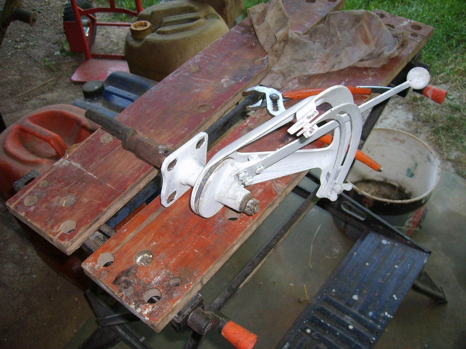 Je suis toujours dans le décapage à blanc de mon Tea et pour faire tous les coins et recoins je démonte, décape dégraisse et passe une couche d'antirouille au pinceau avant de ré-assembler les pièces et les remonter sur le tracteur.