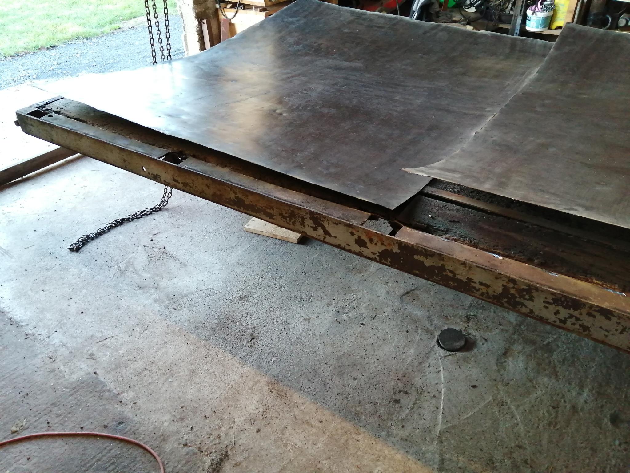 je profite que le plancher tole soit encore fixé pour lui redonner un coup de neuf puis traitement au gazoil.