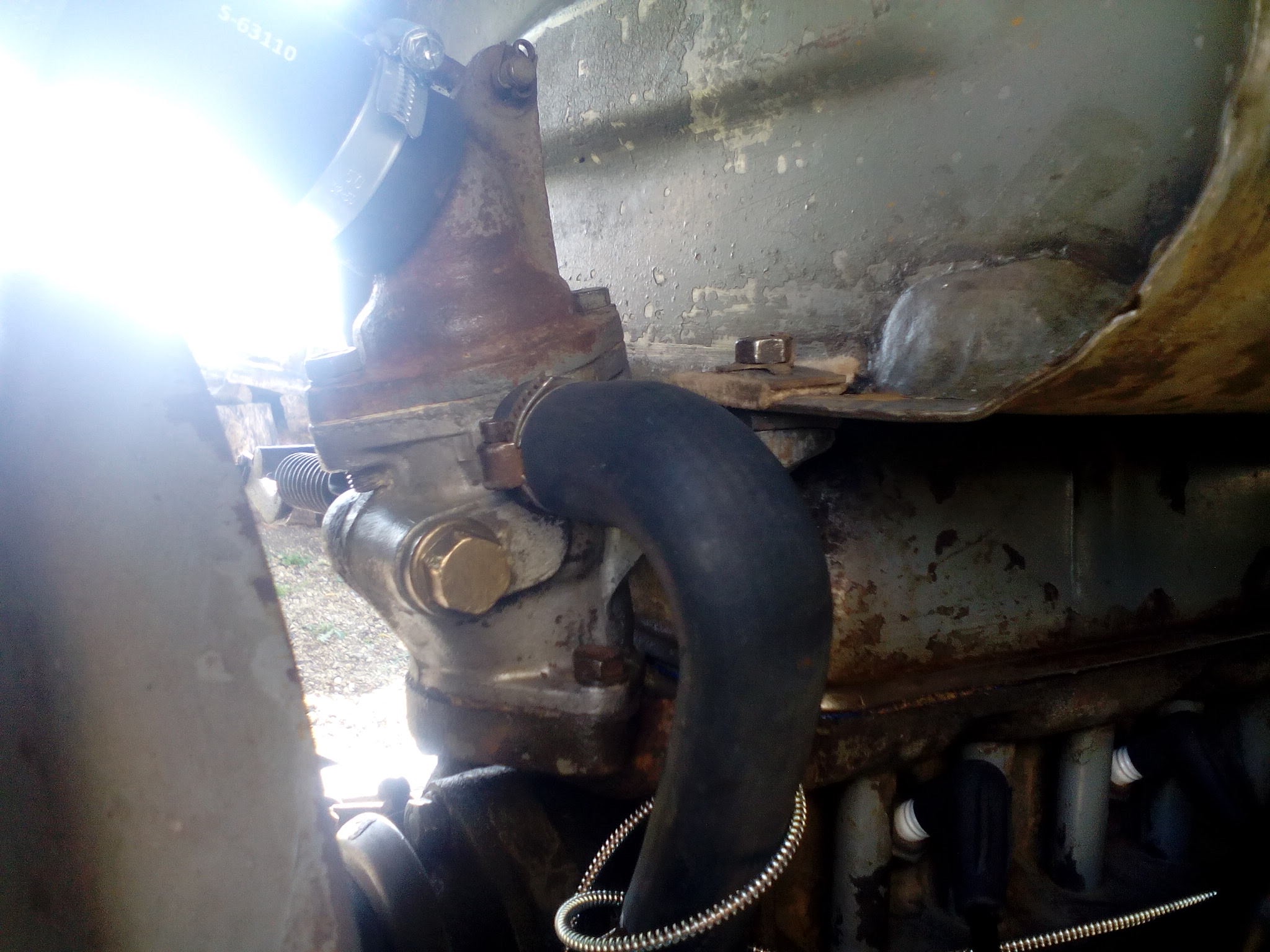 Une petite combine de mécano africain pour souder sans risque un réservoir : Introduire un coté d'un tuyau dans le réservoir(en laissant du jeu) et l'autre coté branché sur l' échappement d'un moteur en marche. Apres un petit moment '( variable en fonction de la taille du récipient) le réservoir est saturé de gaz d'échappement. Tout en maintenant le moteur en marche, soudez sans risque.