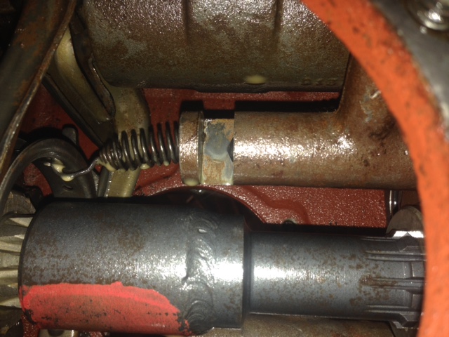 sur la photo on voit le ressort de la fourchette qui est derrière la commande du réducteur.