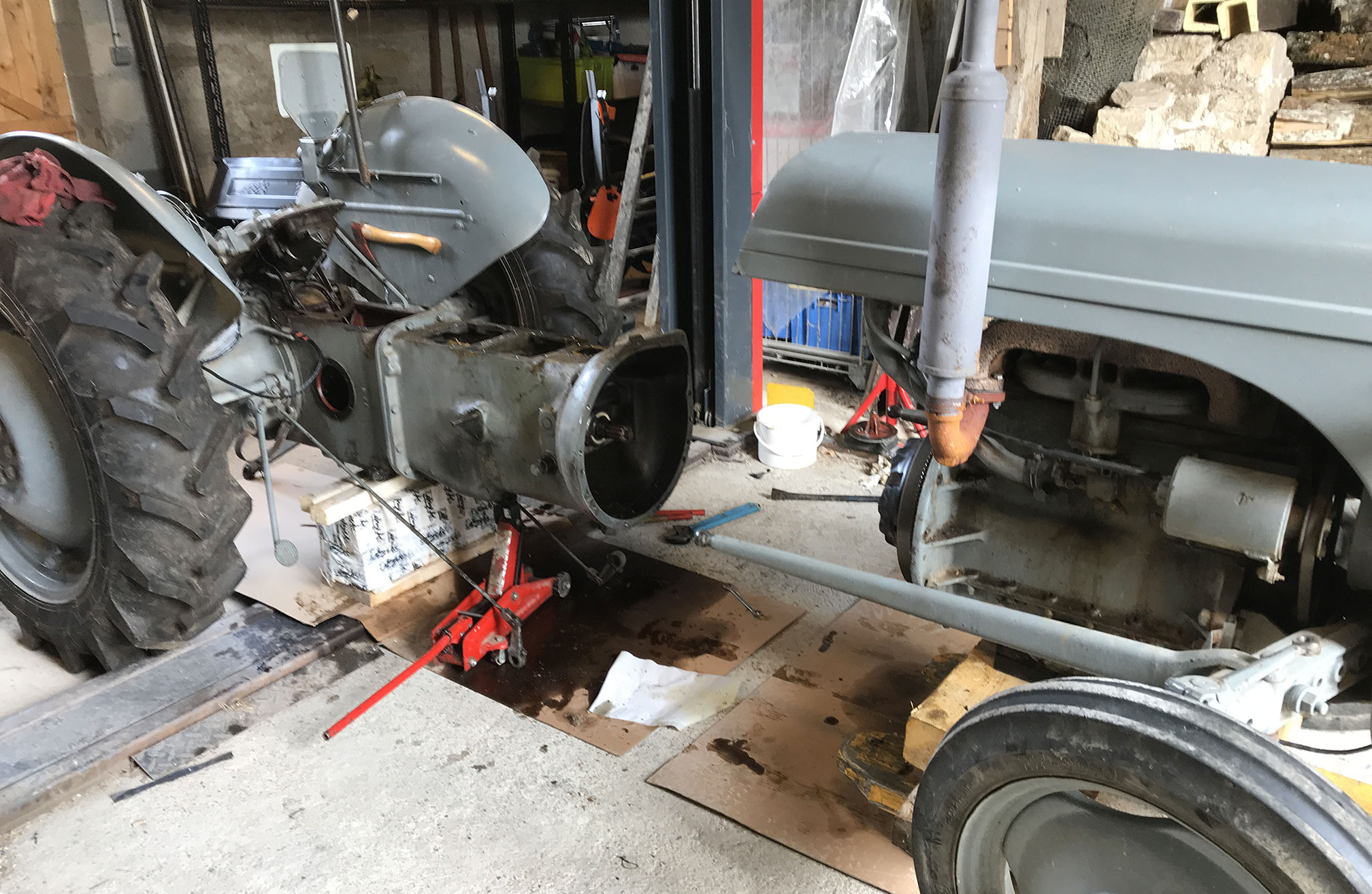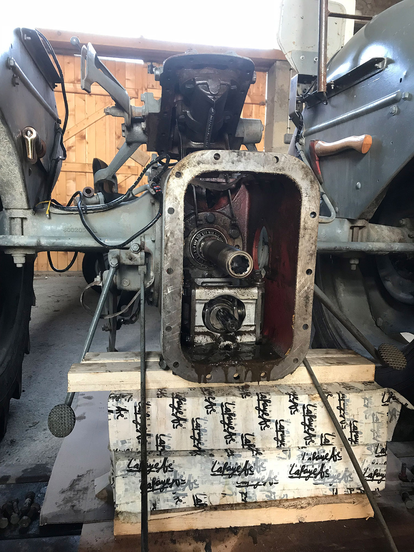 Il me faut retirer le boîtier de direction, couper le tracteur au niveau de l'embrayage, faire "glisser" la partie avant pour changer la boîte.