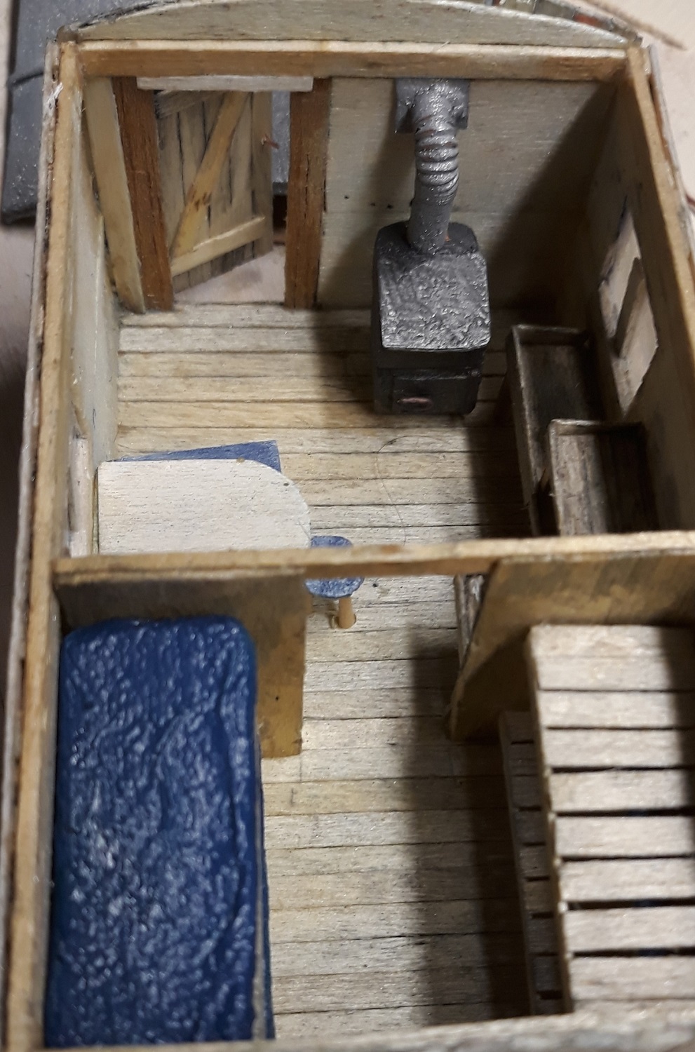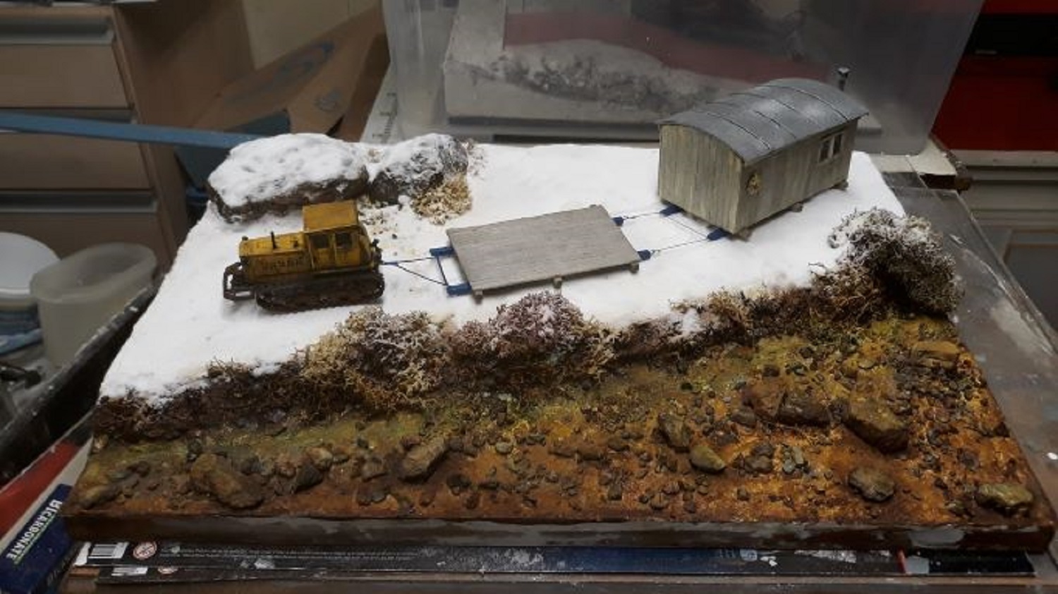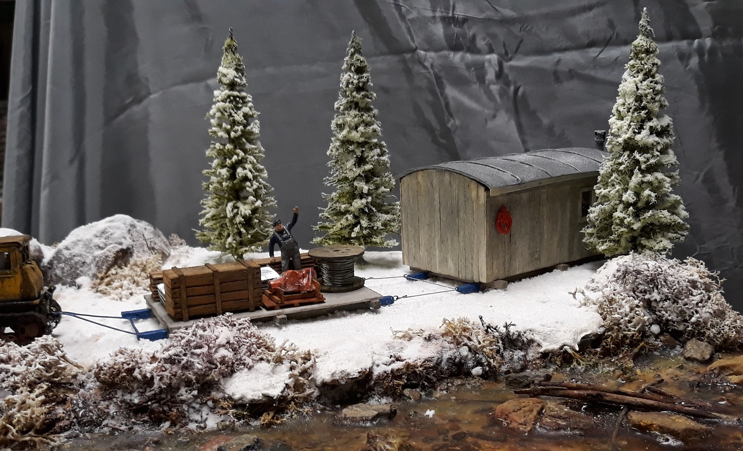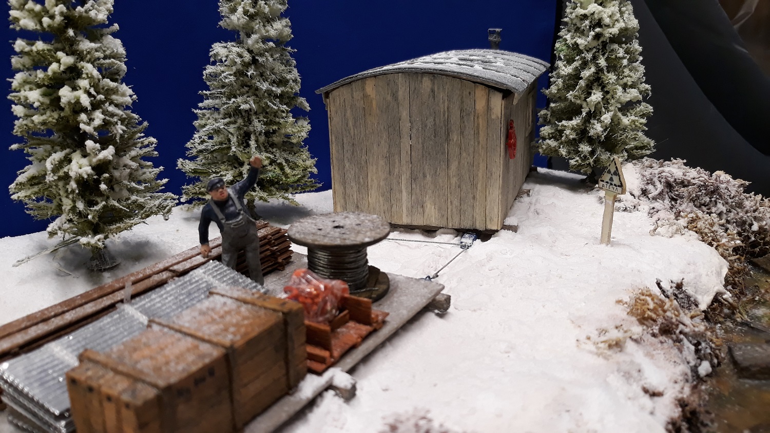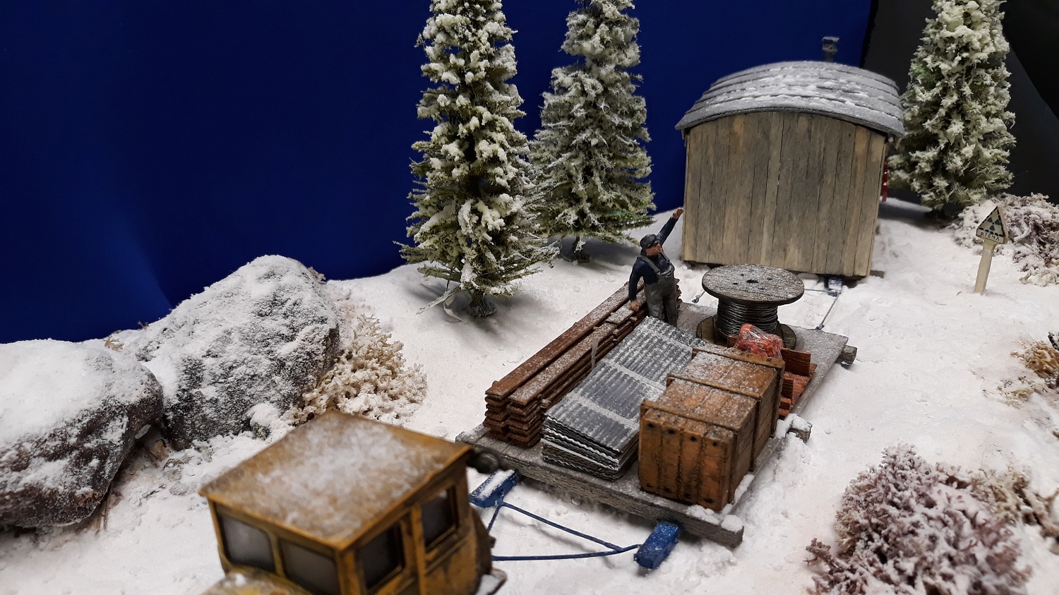 Donc j'ai conçu le petit chalet , le traineau de transport en bois et le décor