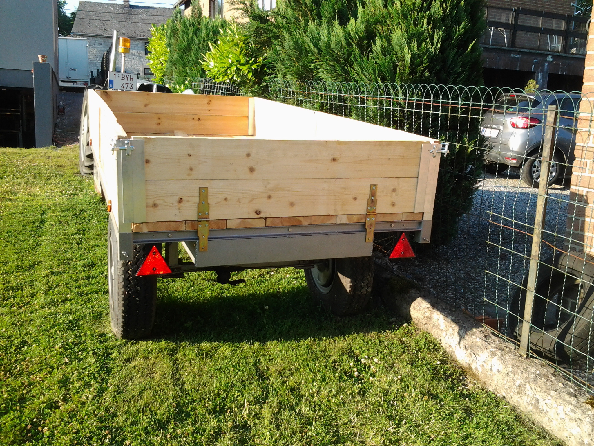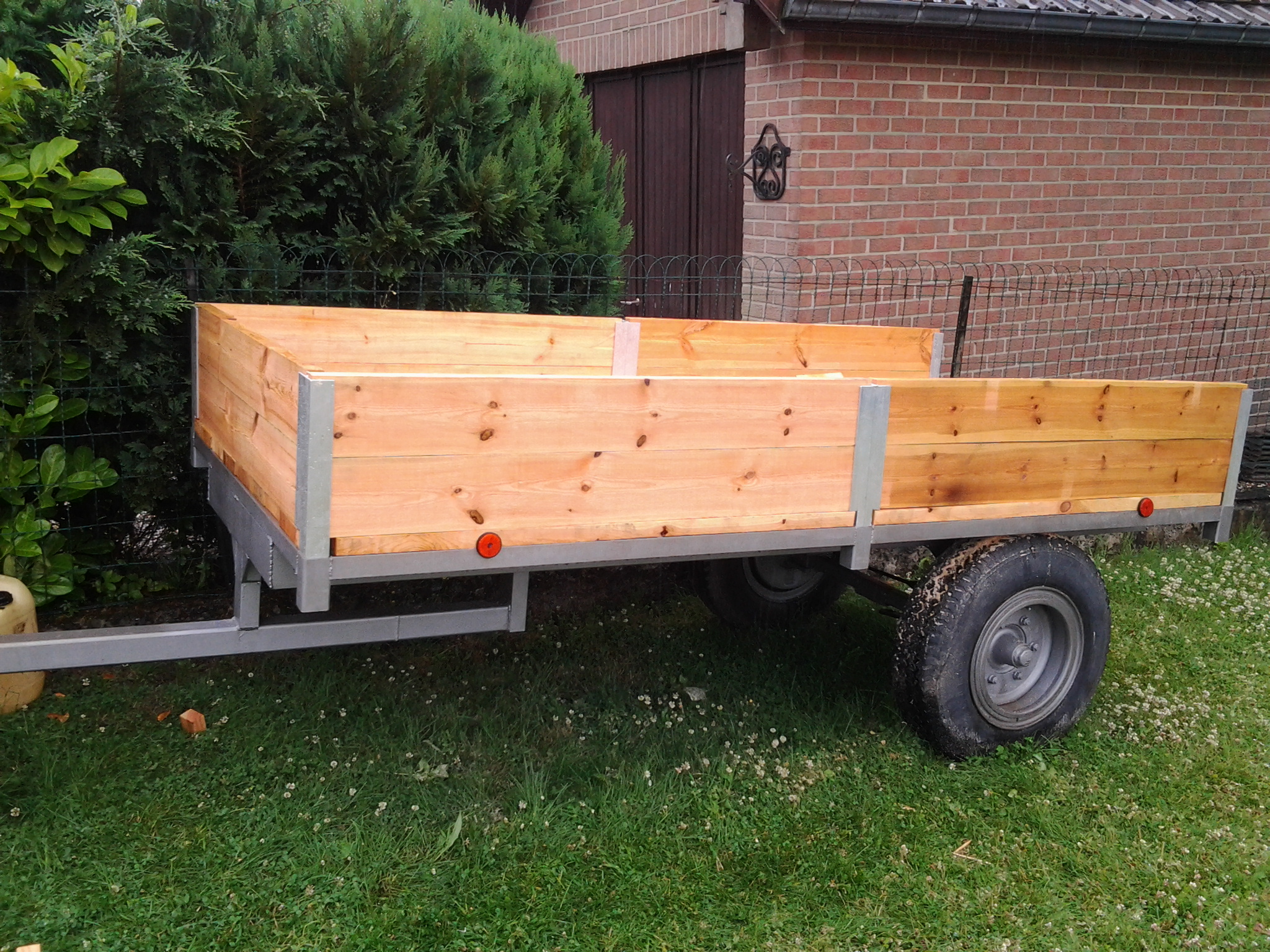 pourrais tu me dire quel feraille quetu as pris pour la réalisation de la benne ? car j'aimerais en réalisé une mais avec vérin pour la basuler ,car jene trouve pas de remorque basculante a bas pris merci