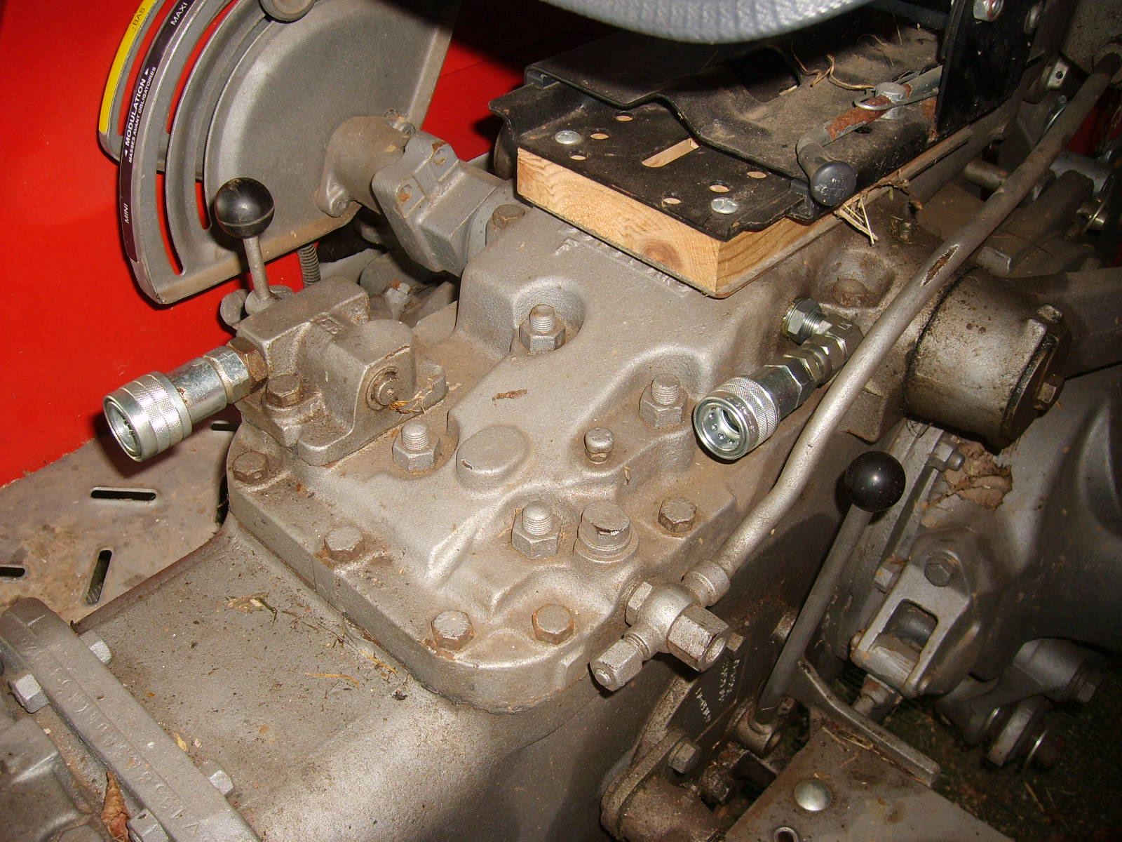 Effectivement mon 165 est à double embrayage (pour la pdf) sans pompe auxiliaire. Actuellement pour lever les bras du chargeur je suis branché sur une vanne à 3 positions: relevage, 2 prises située sous le siège sur le couvercle de la boite. Pour avoir de l'huile sur une de ces prises, je positionne la vanne 3 voies face à l'une de ces prises, la manette de relevage est positionnée sur "pompage continu" et j'utilise la manette de "contrôle d'effort pour monter et descendre le chargeur. Mon souhait si cela est possible est avec le même type de fonctionnement alimenter 2 distributeurs 1 SE 1DE , créer un retour au pont et manœuvrer le chargeur avec ces 2 manettes montée-descente, ouverture-fermeture du godet par vérin double effet.