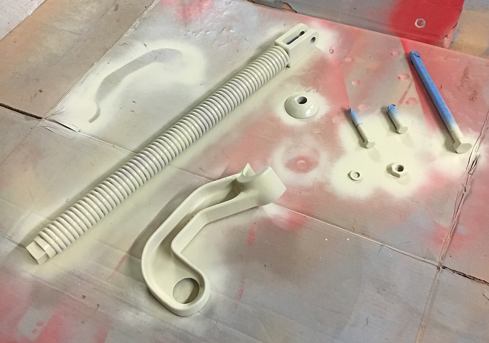 Suite et fin du ressort compensateur. Avec la longue tige filetée bien décapée et graissée, le réglage va pouvoir se faire très facilement maintenant. En effet, malgré le bon état général de l’ensemble, elle n’a pas été simple à dévisser...