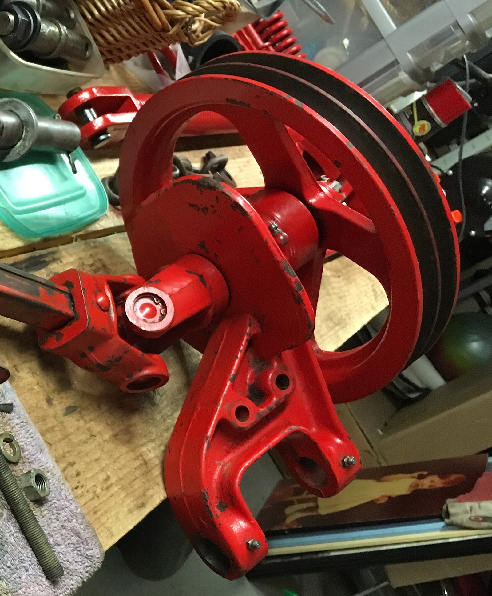 Et j’ai attaqué le cœur de la bête: la poulie motrice. Beaucoup de graisse mêlée à de la terre et des herbes. Ça protège le métal, cette pâte crasseuse, c’est impressionnant. Dessous, c’est comme neuf!