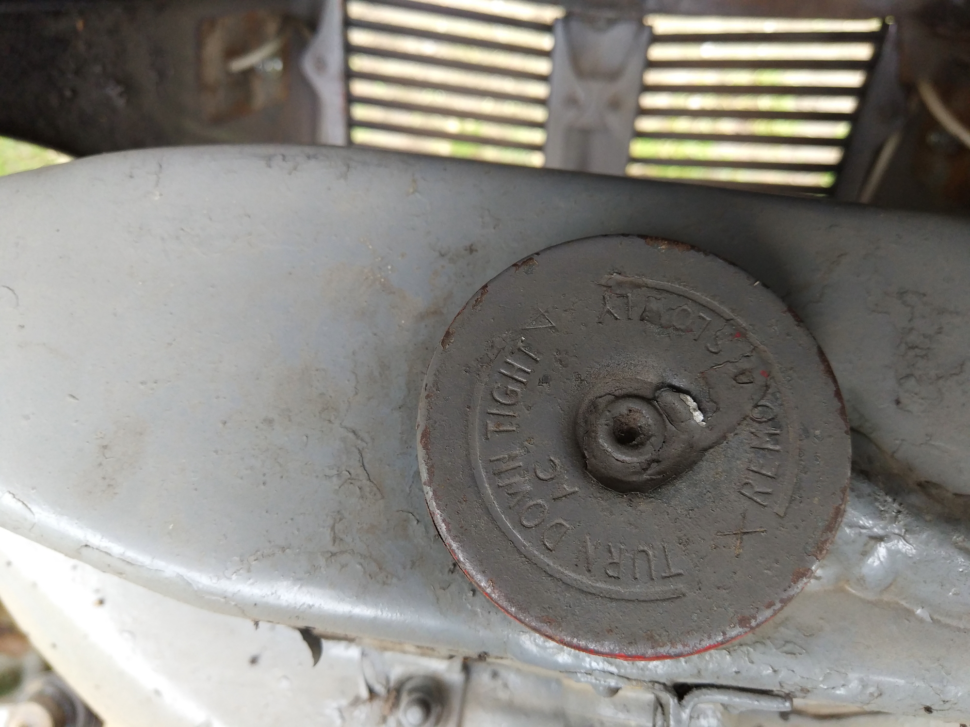 Coté réservoir de carburant tout semble normal sauf le réservoir auxiliaire disparu. Dans quel but ? J'aime bien les patins de feutre probablement anciens.