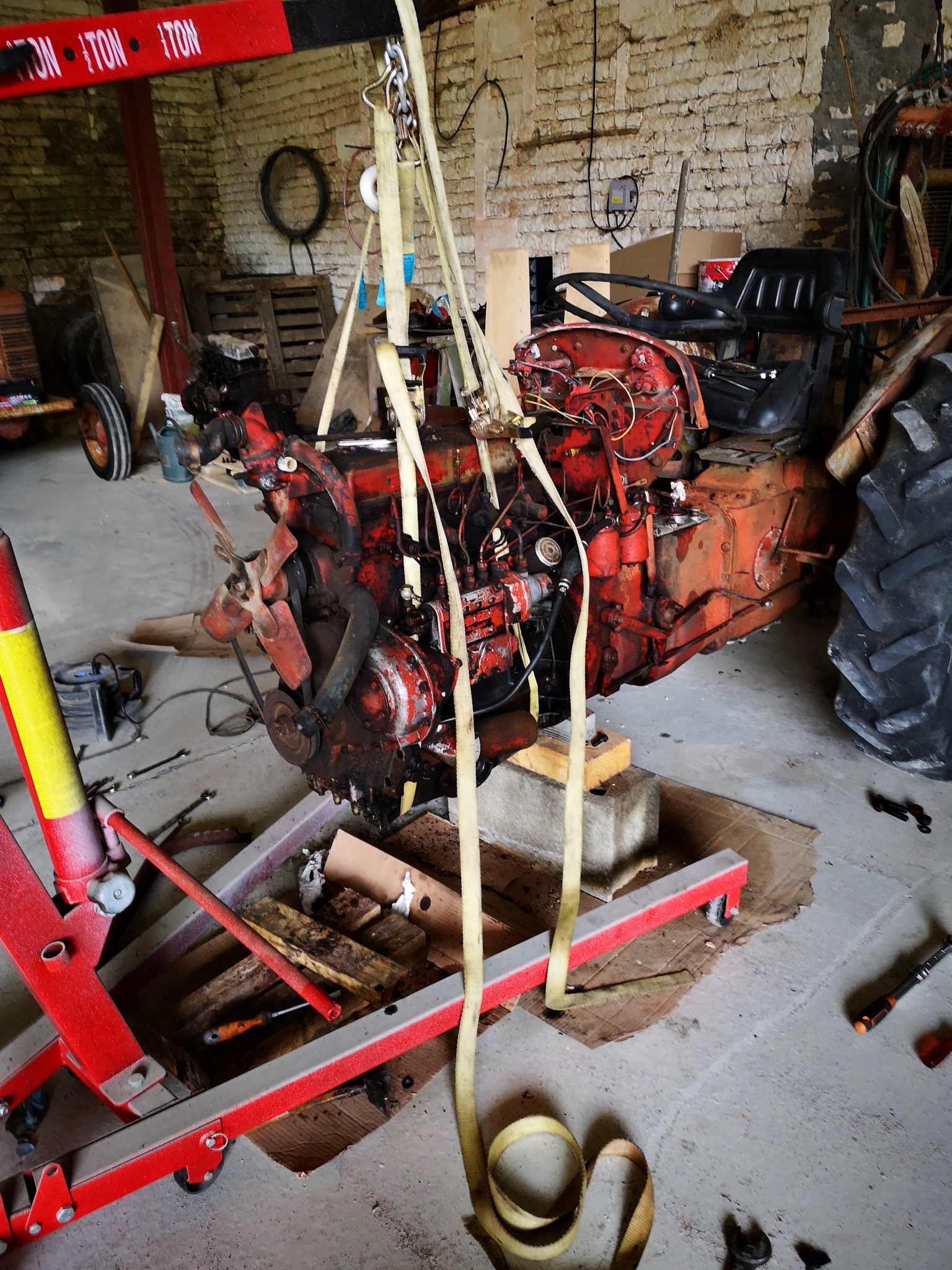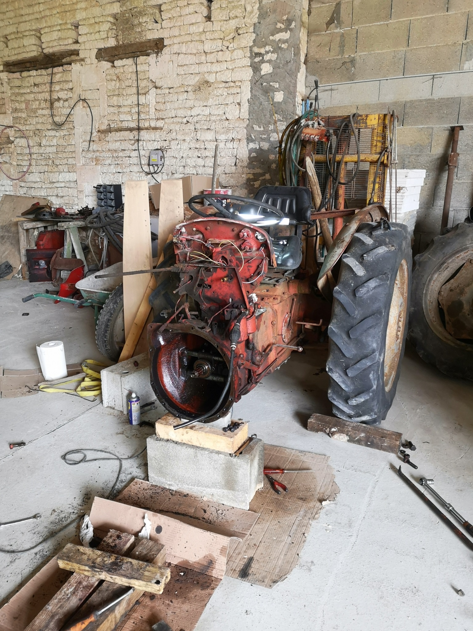 Les travaux avançaient très bien... Trop bien ce que je craignais et arrivé une fois le tracteur remonté pas d embrayage !! Pédale a fond même après la Calle !! Tout est censé être bon et là franchement on calle !!! Impossible de comprendre ce qu on a mal fait !! Ce pourrait il que le mecanisme soit mort sachant que l on a jamais vu le tracteur rouler et de plus il y a un blocage de la roue gauche à l avance mais en reculant pas de soucis !! Y aurait il quelqu'un qui y comprend quelque chose car la je suis en mode grosse frustration mgr