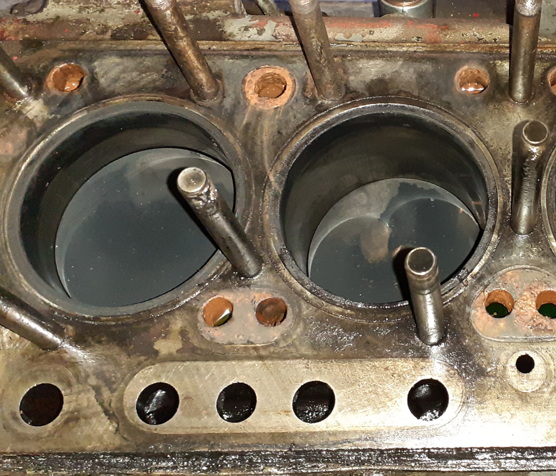 tu a detruit le piston mais vu la photo des cylindres il y a beaucoup de jeux entre piston et cylindres d'apres moi toute la cylindrees est à remplacer