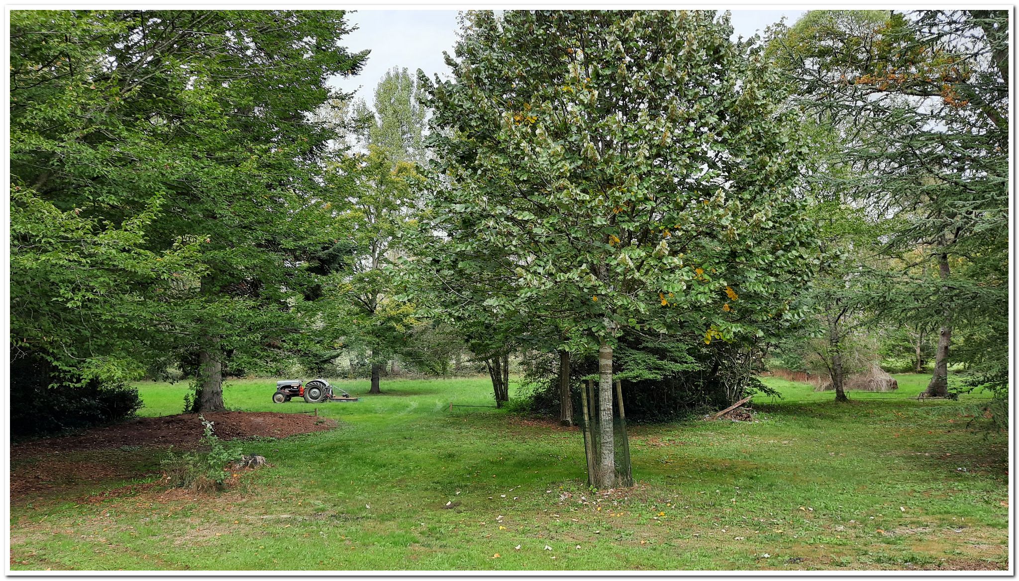 Maintenant : 4000 m2 près de la maison. Il n'y avait rien qu'un chêne et deux charmes. J'ai planté beaucoup: haies, cèdre de l'Atlantique, cèdre déodara, sapins de Serbie, sapin nobilis, un beau tilleul, épicéas etc