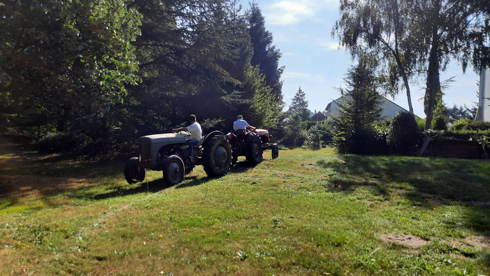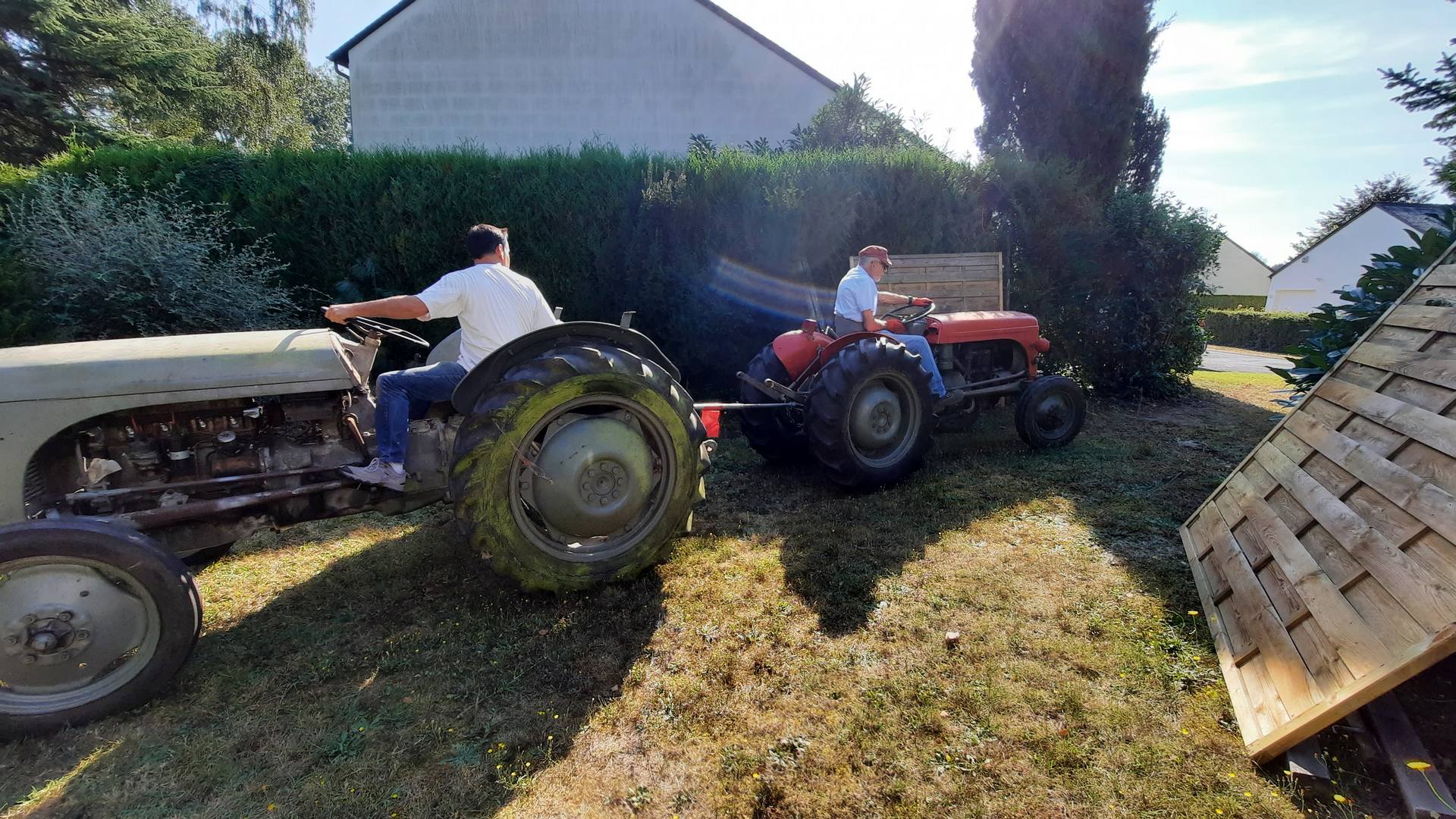 Ce matin Hansi ( TEC de 1951) qui a eu du mal à se retaper entièrement ( voir les posts correspondants) est parti avec Olivier, comme Adrien il y a 8 Jours .J’avais ce tracteur, mon deuxième Ferguson depuis exactement 20 ans, jour pour pour!