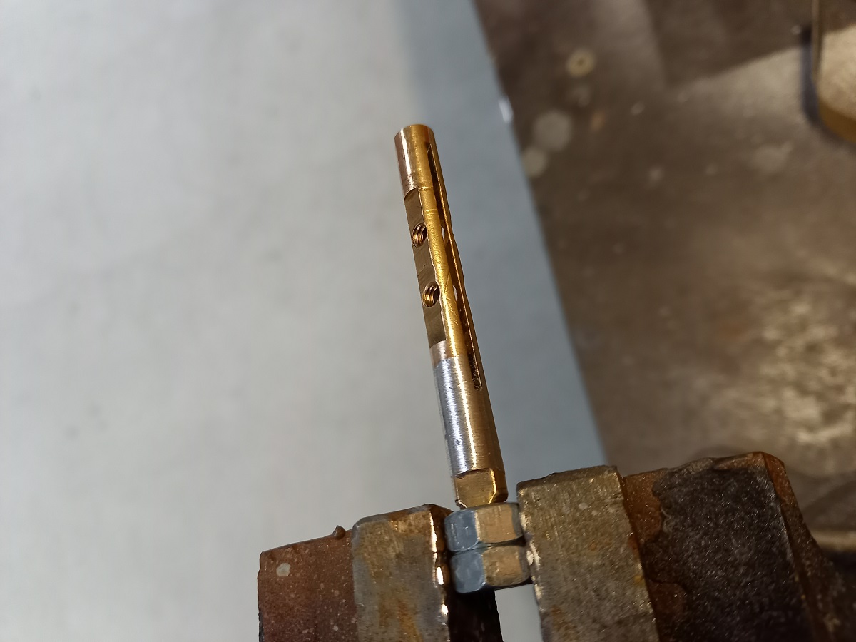 Il a fallu recharger l'axe et le trou avant de mettre une bague neuve , au passage j'ai mis un graisseur.