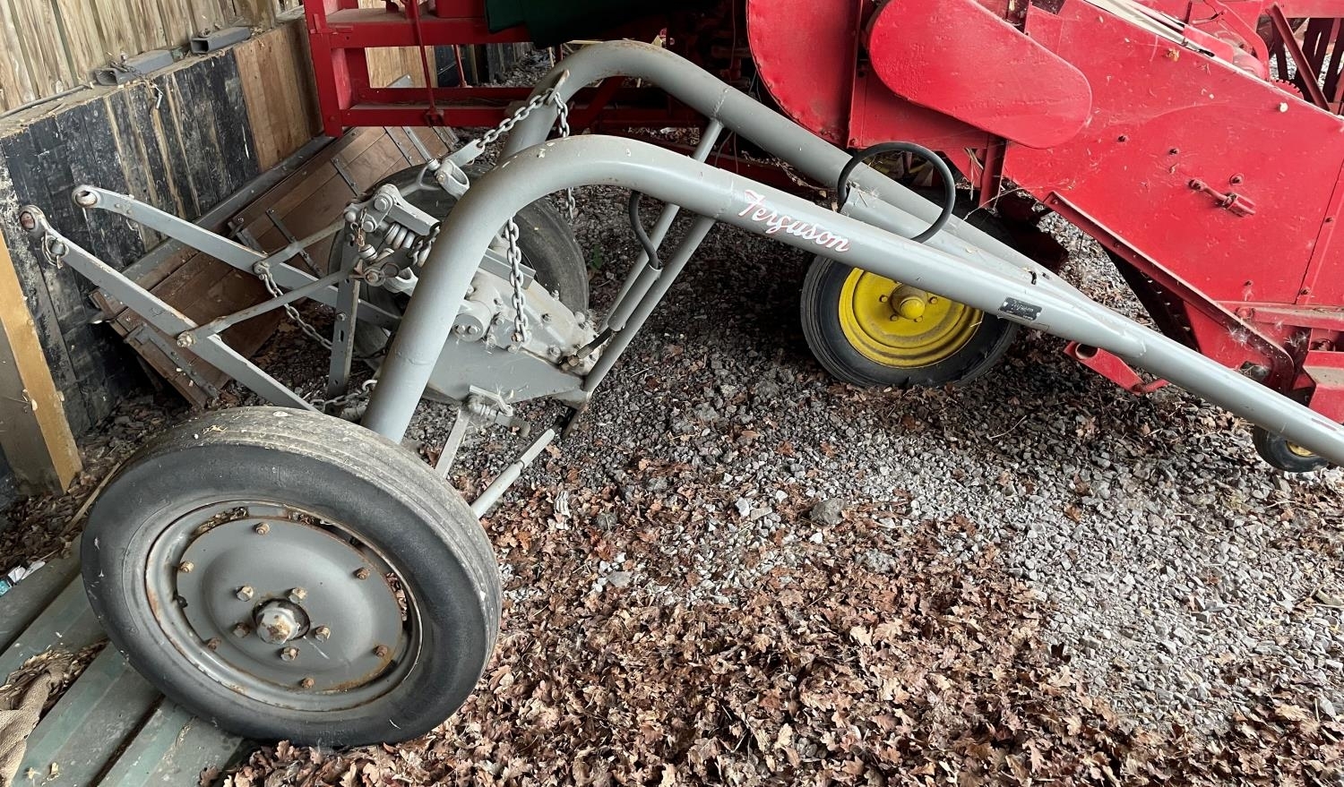 Regardé aussi sur le net tout ce qui se rapporte au FERGIE et ses accessoires tirés ou portés. Pas vu ce genre d'outil ni sur schéma mécanique ou publicitaire de matériels ferguson ! Bizarre d 'avoir fait un relevage déporté sur roues. Comment dans ce cas fonctionne le principe 3 points de ferguson, si celui-ci n''est pas intégré au châssis du tracteur ? Quel peut être l'intérêt d'un tel système et pour quelle utilisation ? Pas facile d'imaginer ce système pouvant servir de la même façon que celui sur le pont tracteur.