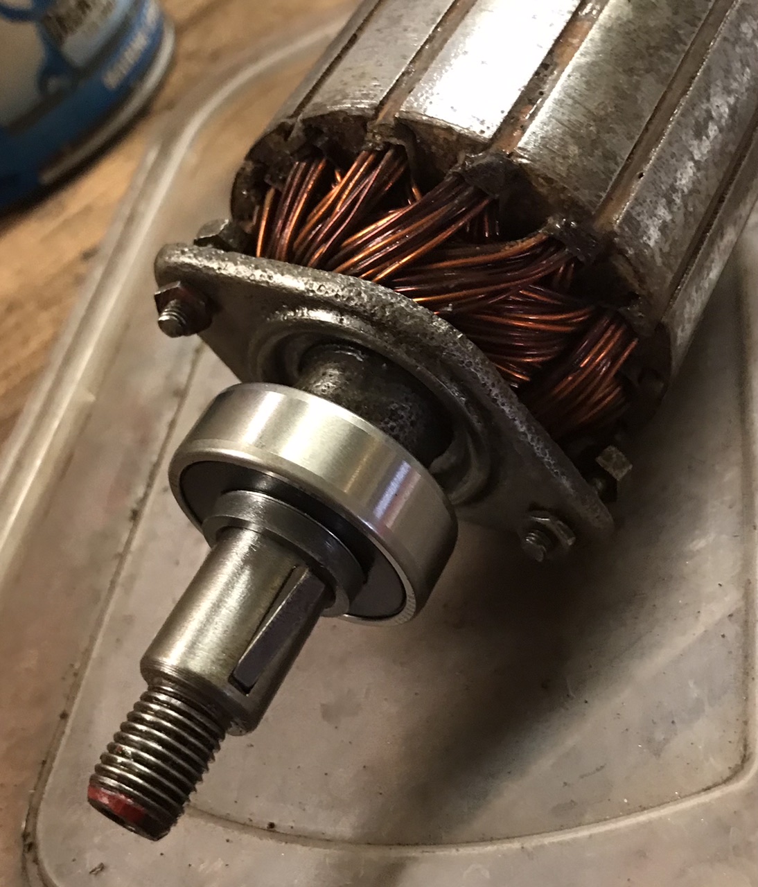 Parfait pour les charbons et le roulement. Concernant le fil de la borne "excitation" son remplacement est je pense indispensable. Après un bon décapage je tenterais un étamage sur le fil existant pour voir si l'étain prend facilement. Un fer pour électronique ne chauffe pas tant que cela. Si la soudure prend bien, fil neuf, soudure sous gaine rétractable et roule.